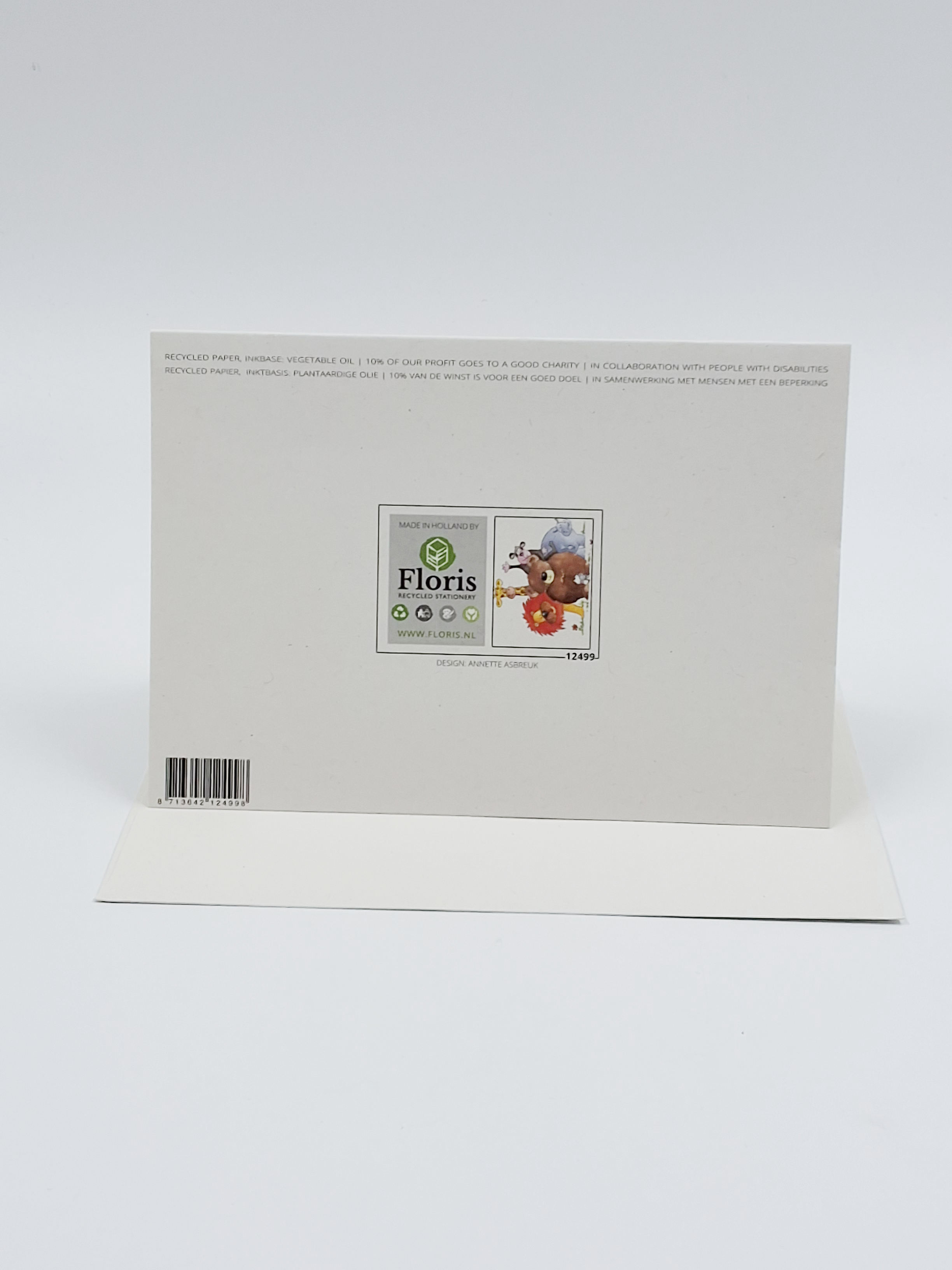 Onze wenskaarten zijn gemaakt van gerecycled papier en bedrukt met inkt op basis van plantaardige olie.