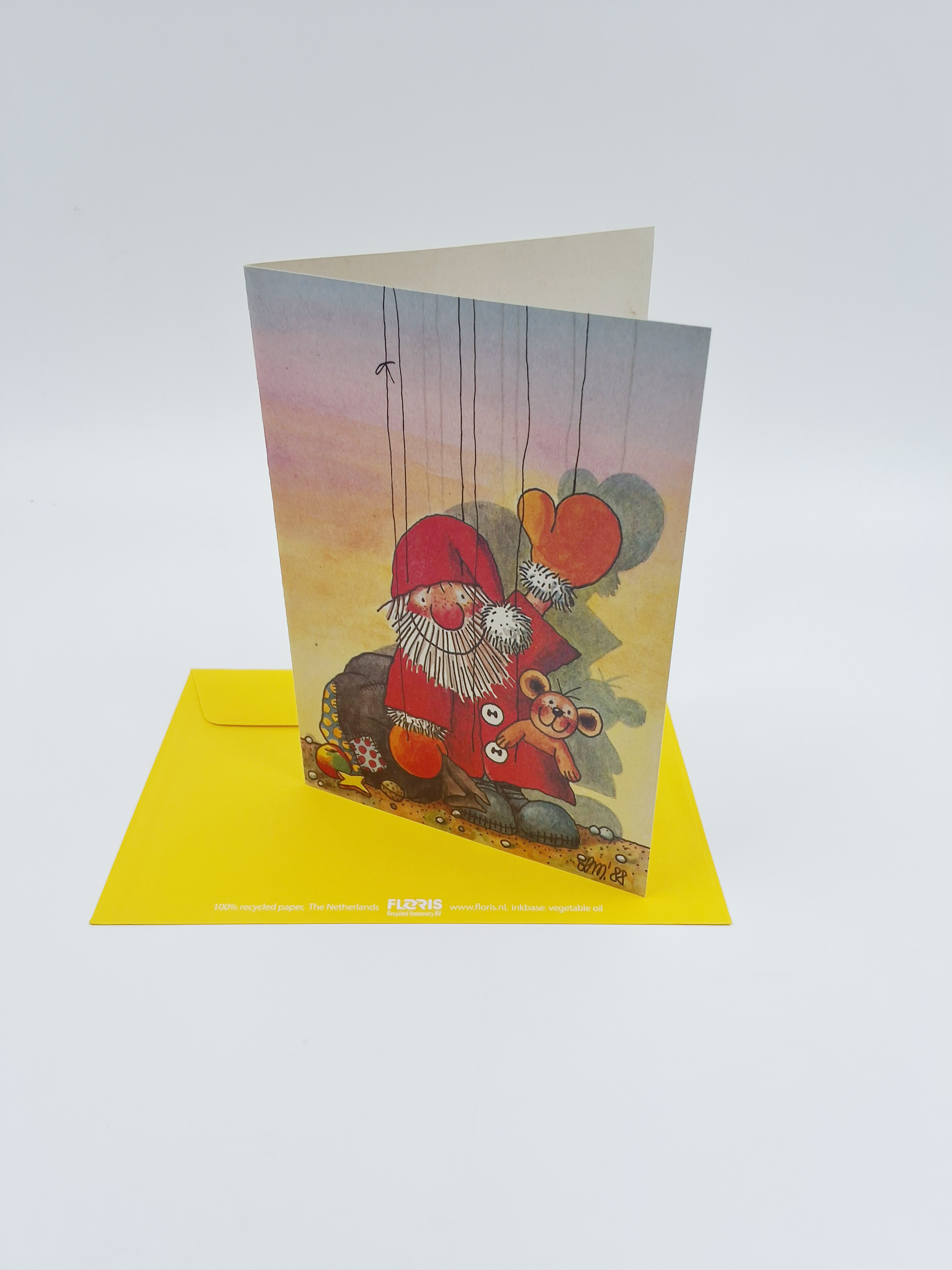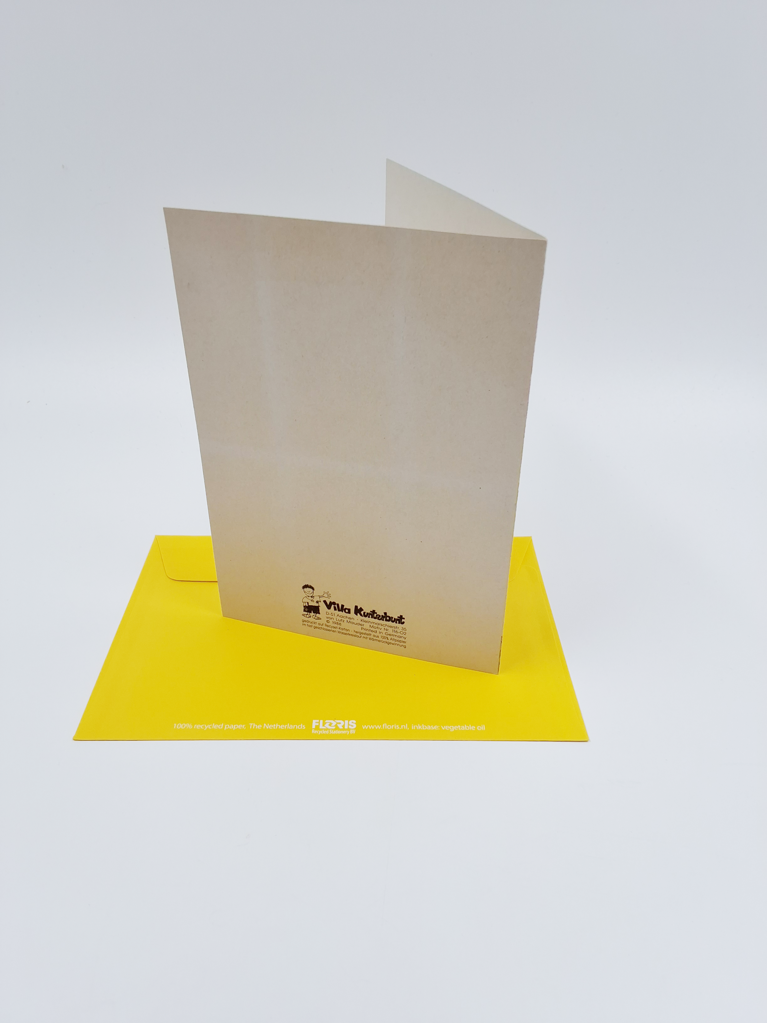 Onze wenskaarten zijn gemaakt van gerecycled papier en bedrukt met inkt op basis van plantaardige olie.