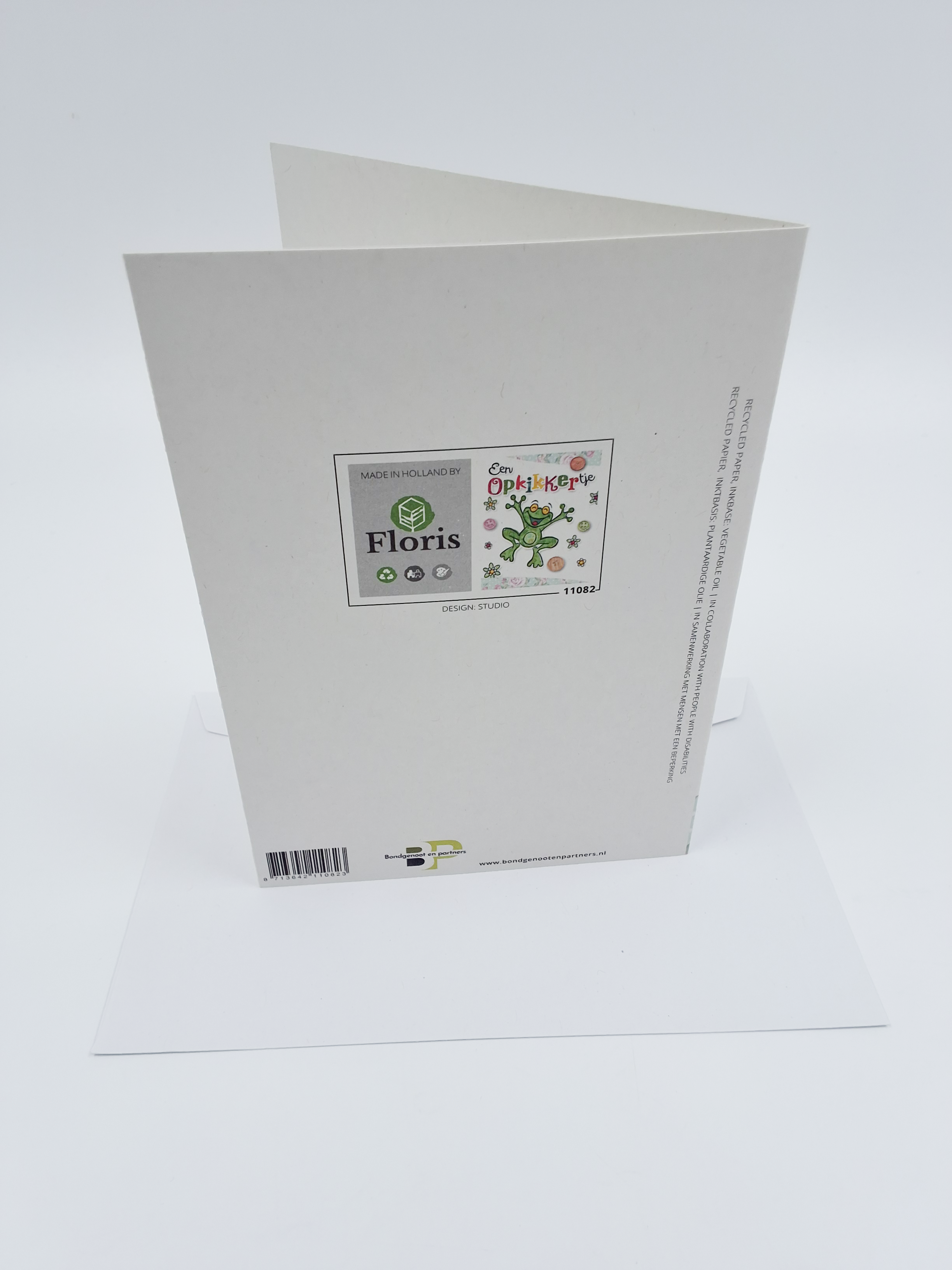 Onze wenskaarten zijn gemaakt van gerecycled papier en bedrukt met inkt op basis van plantaardige olie.