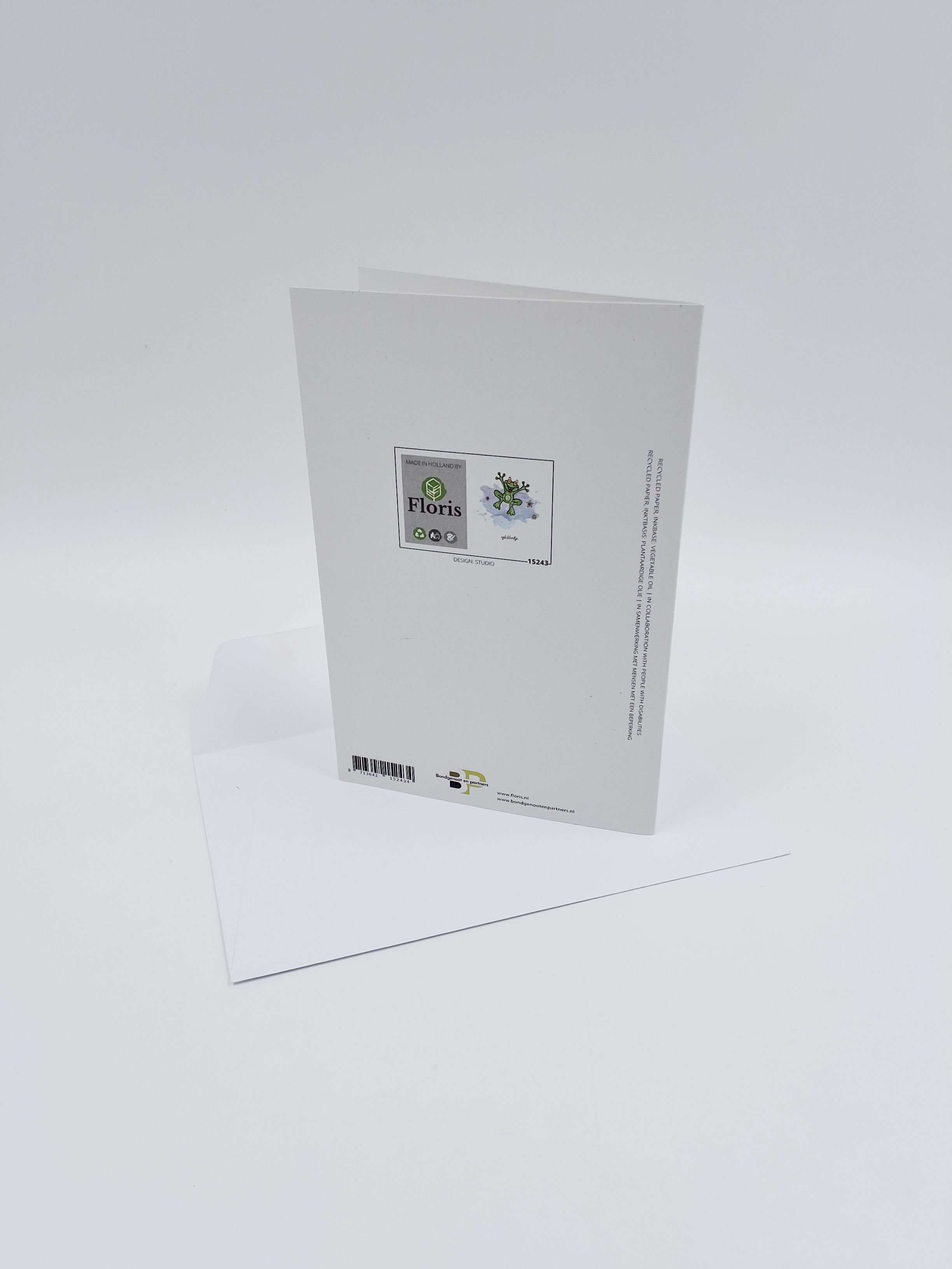 Onze wenskaarten zijn gemaakt van gerecycled papier en bedrukt met inkt op basis van plantaardige olie.