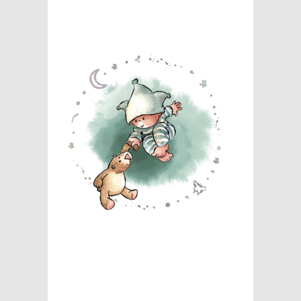 Wenskaart kindje met knuffel