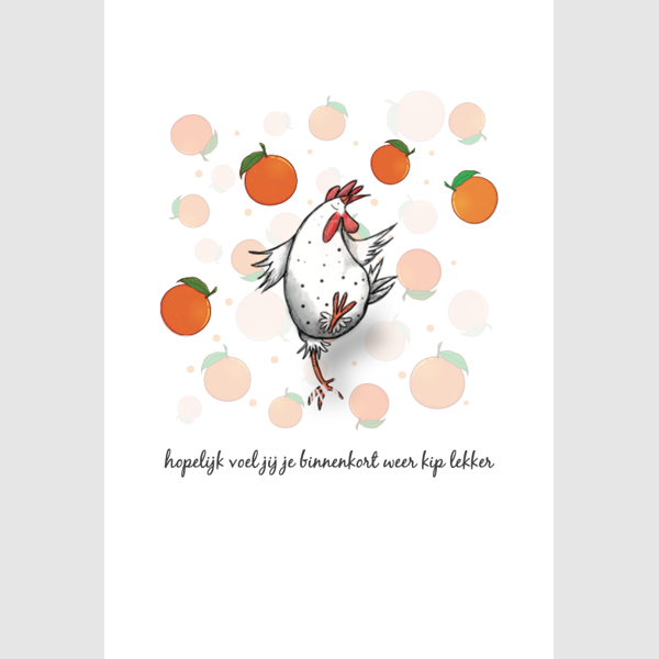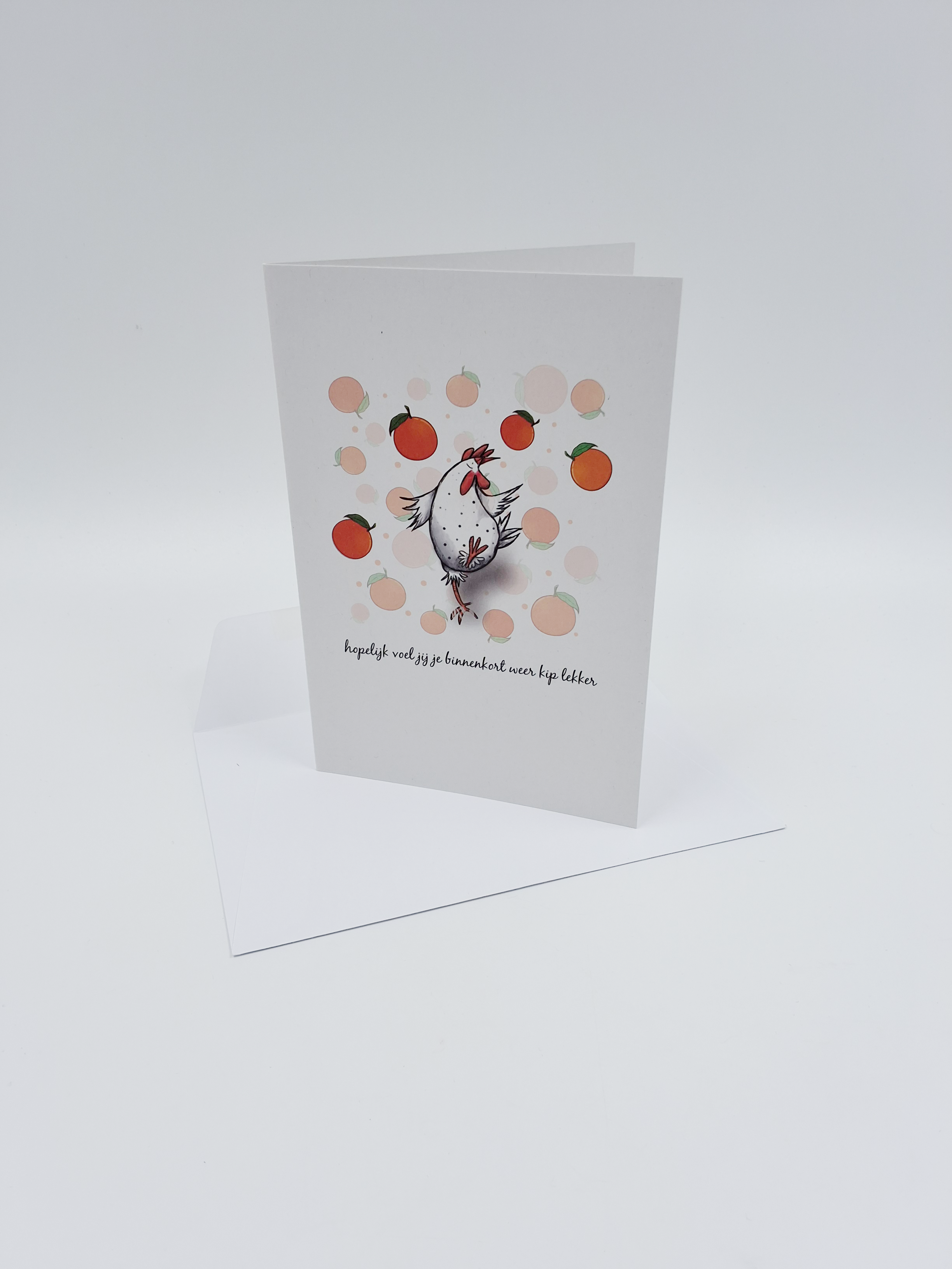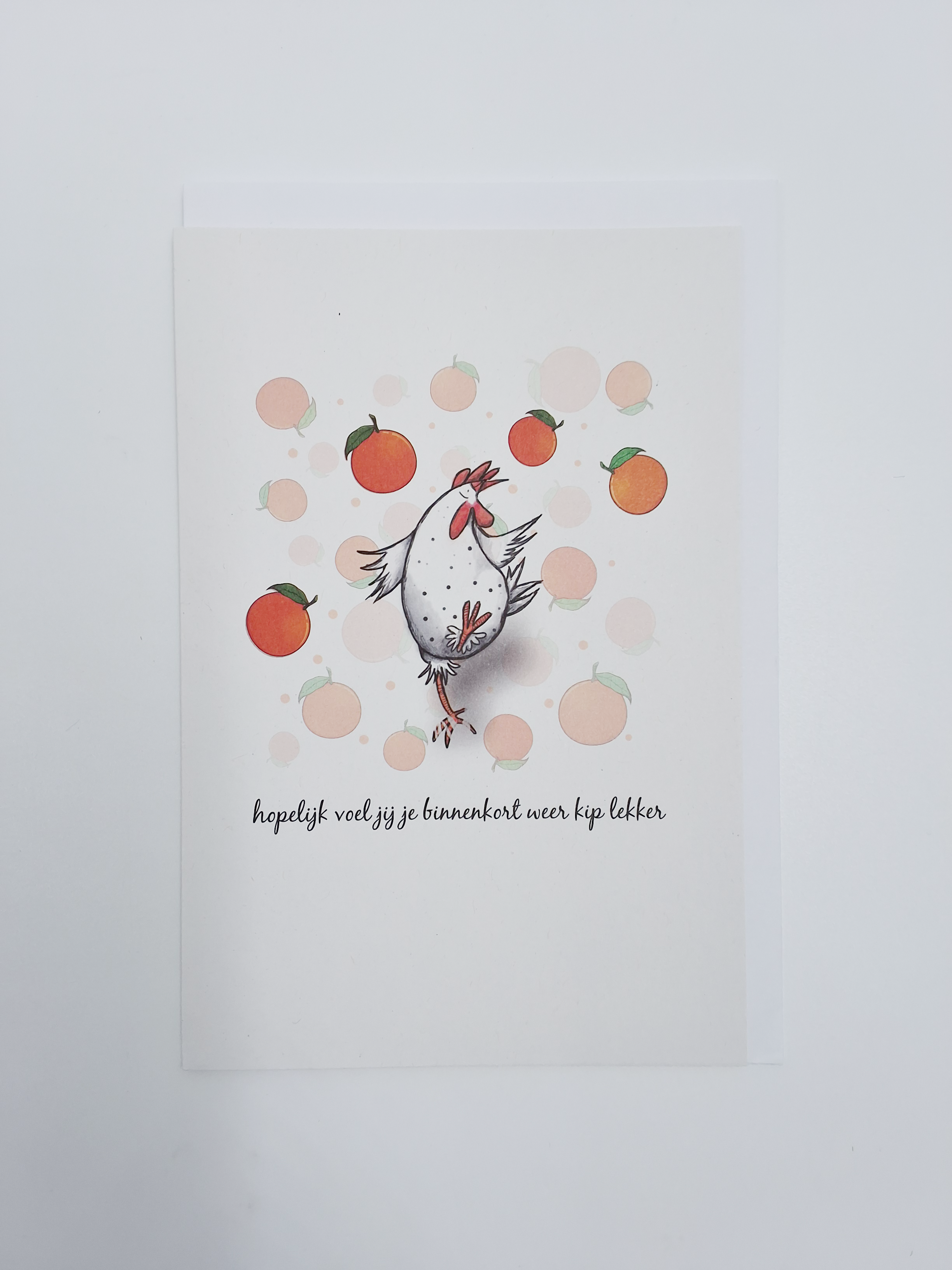 Wenskaart kip, hopelijk voel jij je binnenkort weer kip lekker