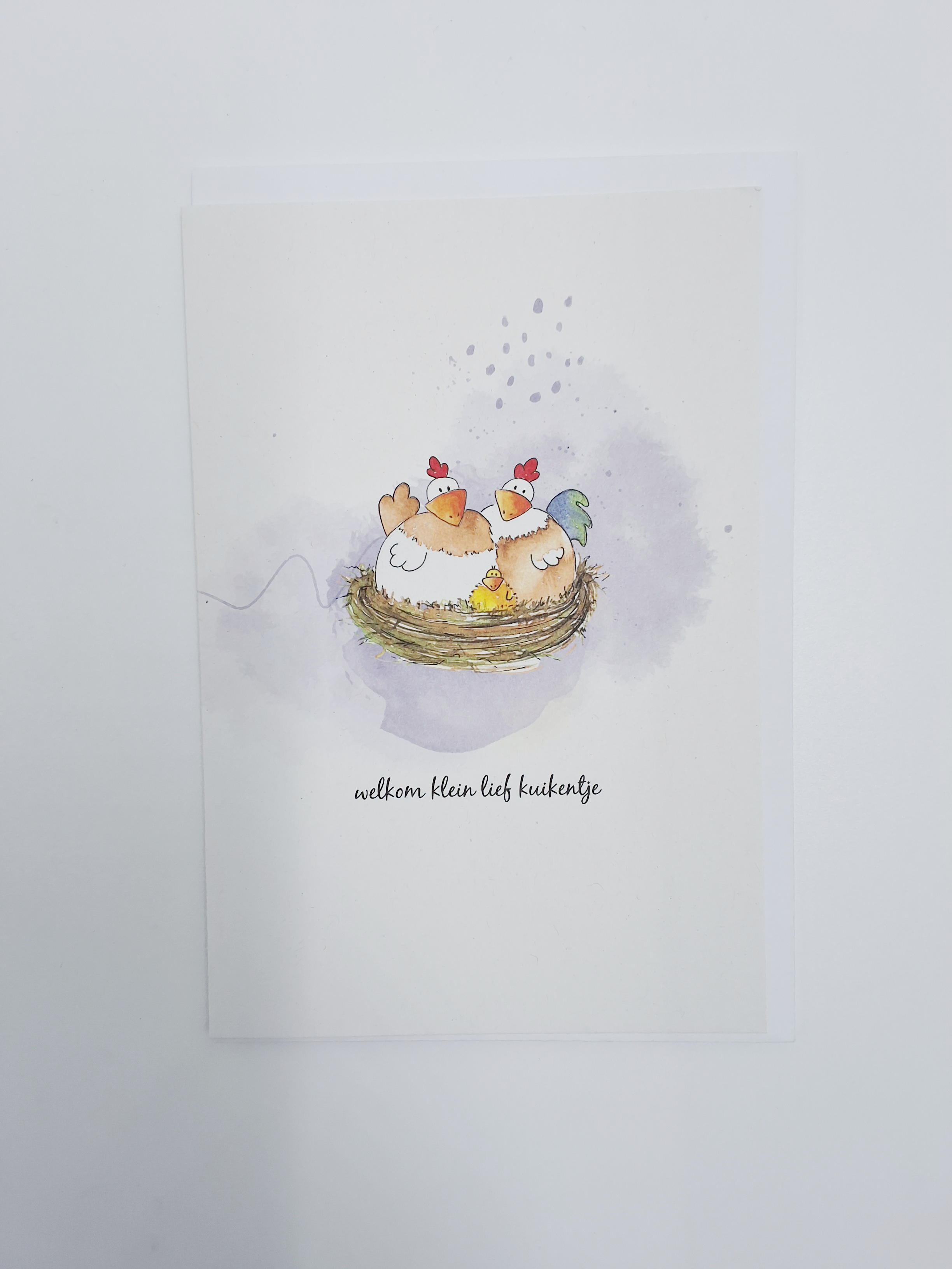Onze wenskaarten zijn gemaakt van gerecycled papier en bedrukt met inkt op basis van plantaardige olie.