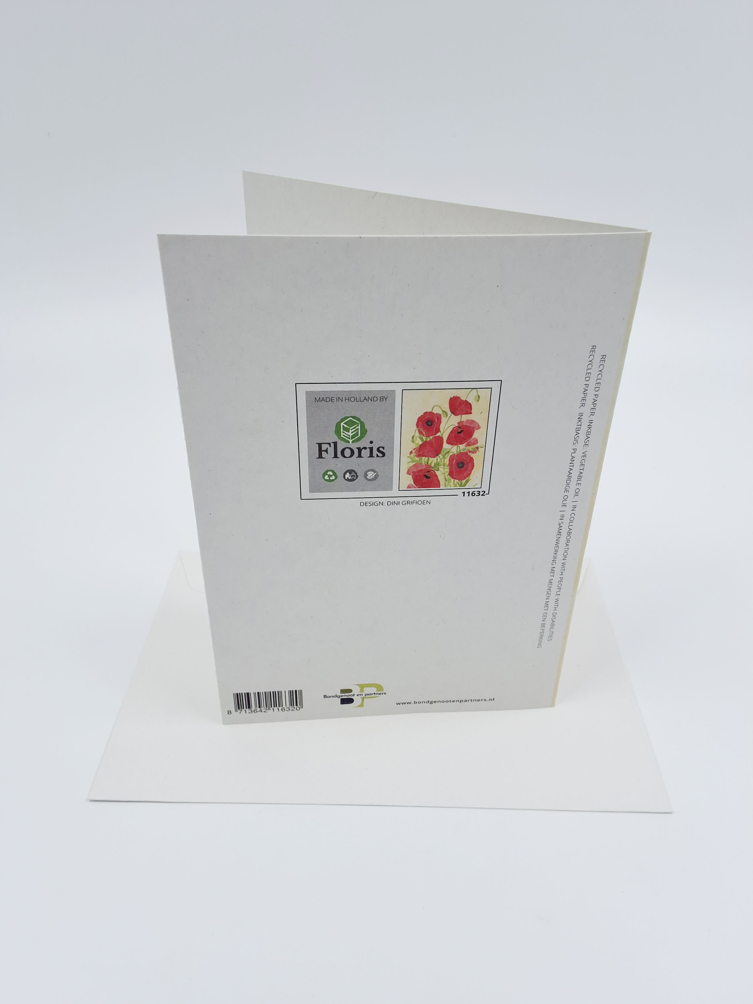 Onze wenskaarten zijn gemaakt van gerecycled papier en bedrukt met inkt op basis van plantaardige olie.