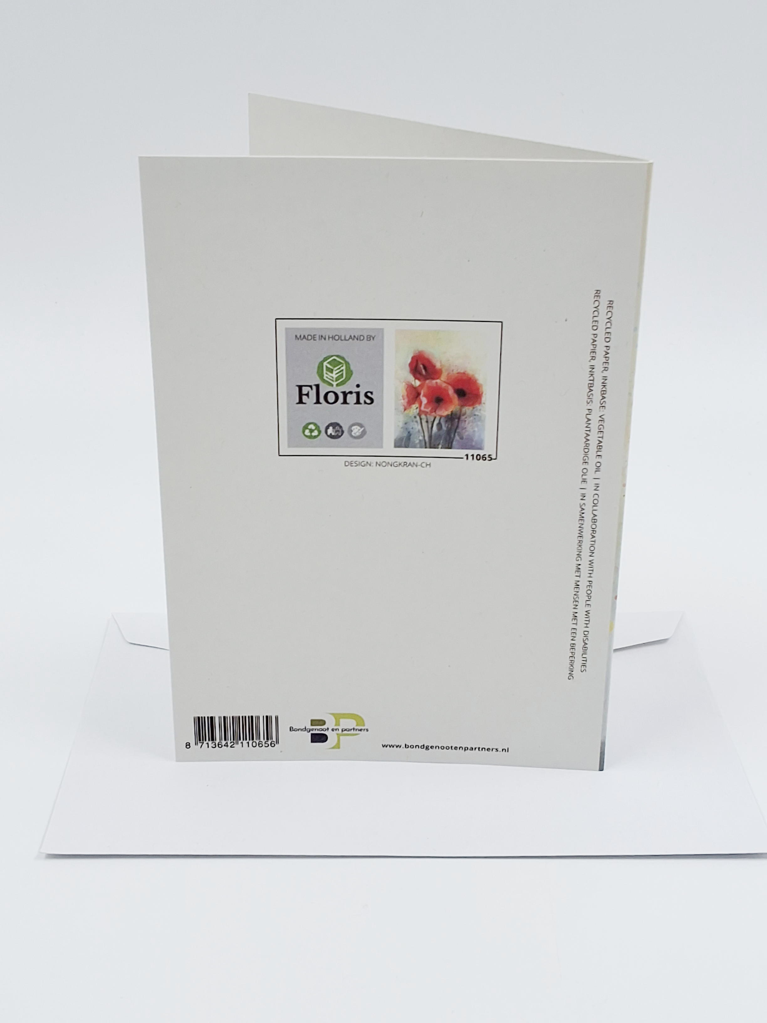 Onze wenskaarten zijn gemaakt van gerecycled papier en bedrukt met inkt op basis van plantaardige olie.