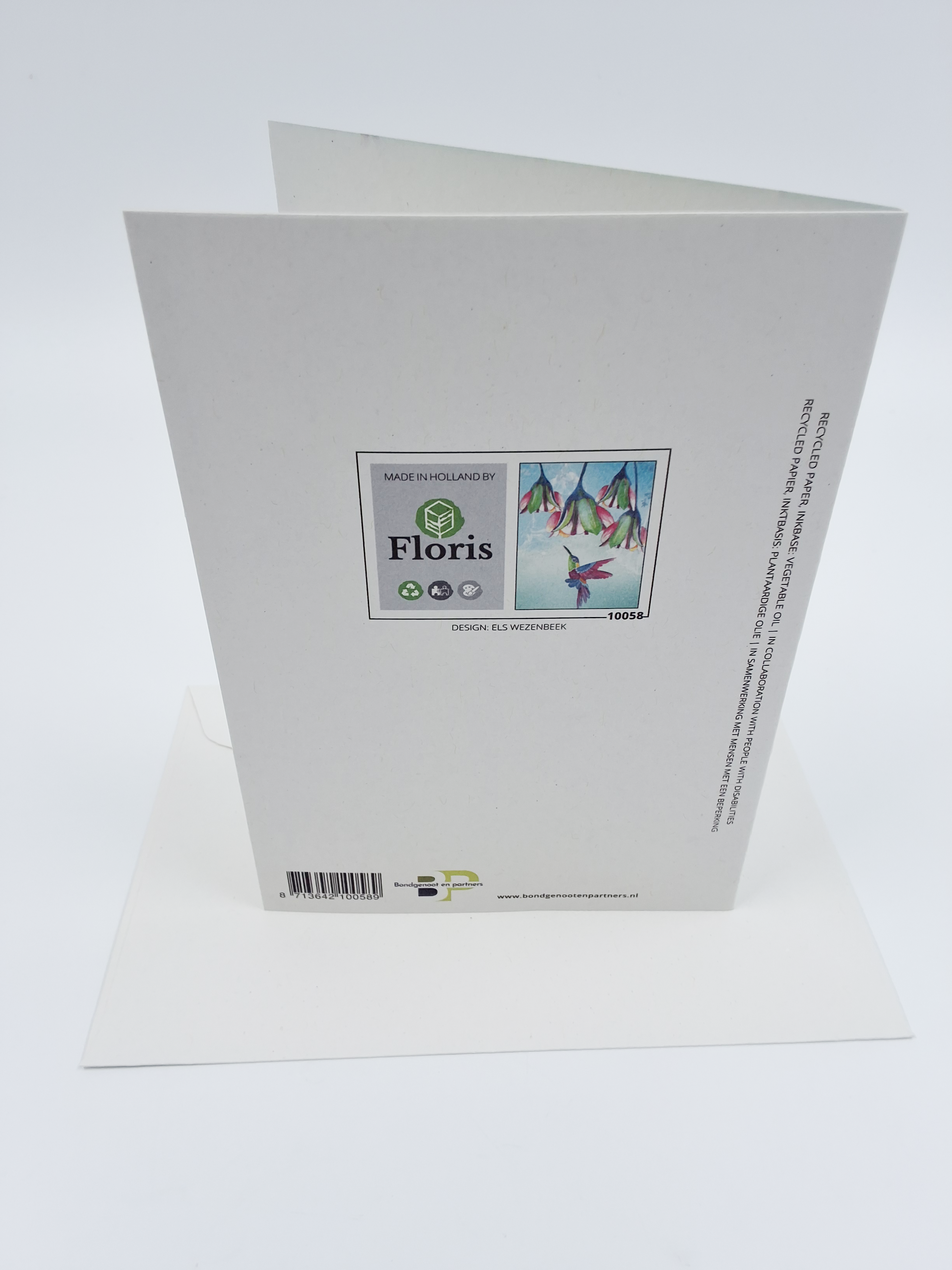 Onze wenskaarten zijn gemaakt van gerecycled papier en bedrukt met inkt op basis van plantaardige olie.