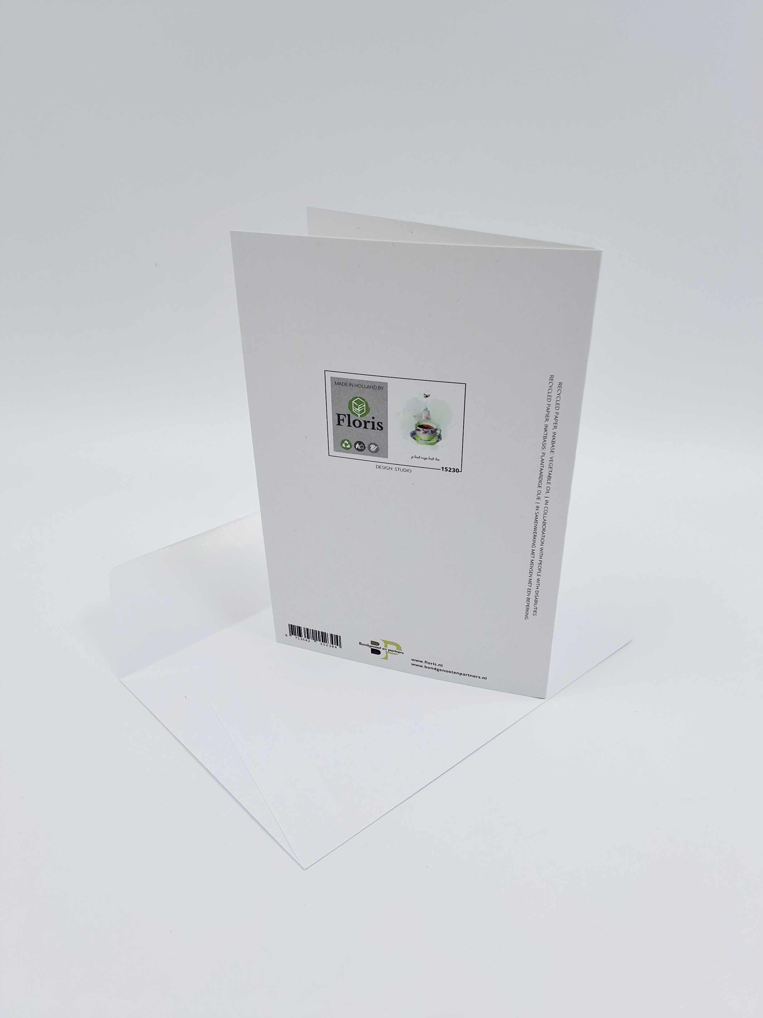 Onze wenskaarten zijn gemaakt van gerecycled papier en bedrukt met inkt op basis van plantaardige olie.
