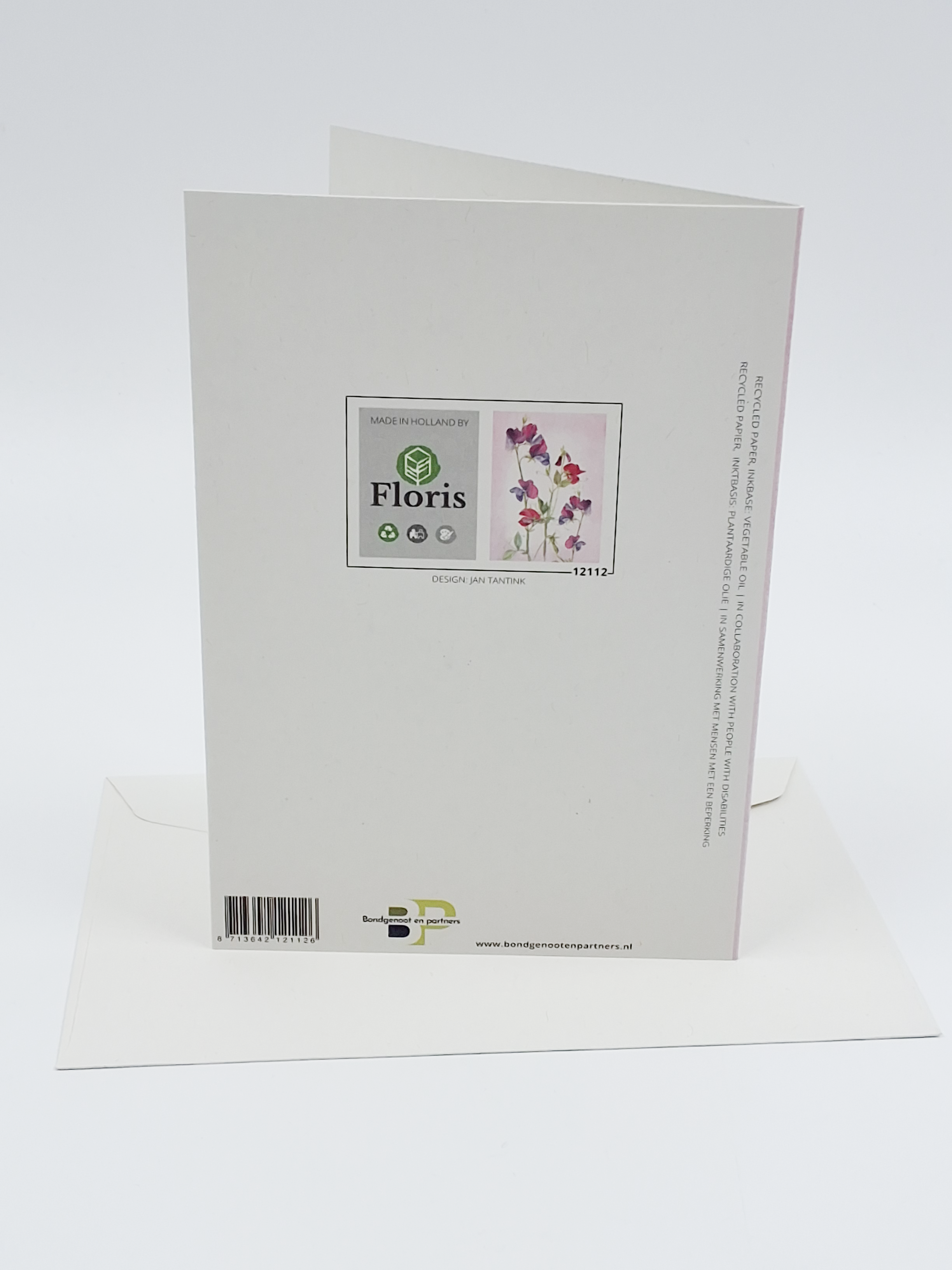 Onze wenskaarten zijn gemaakt van gerecycled papier en bedrukt met inkt op basis van plantaardige olie.