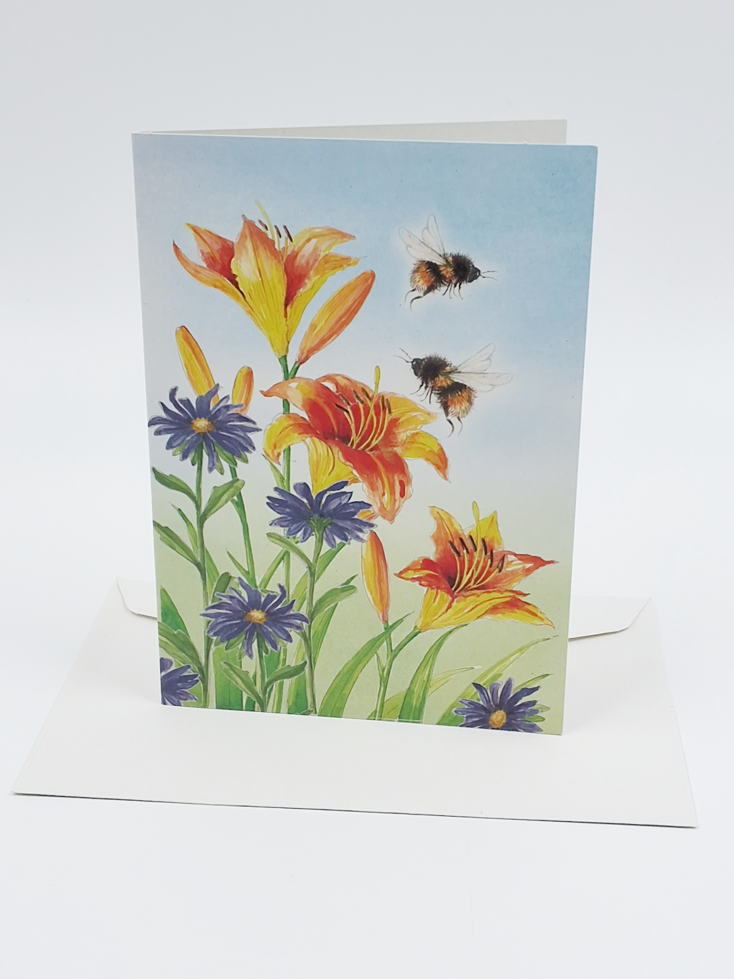 Wenskaart lelies bijen