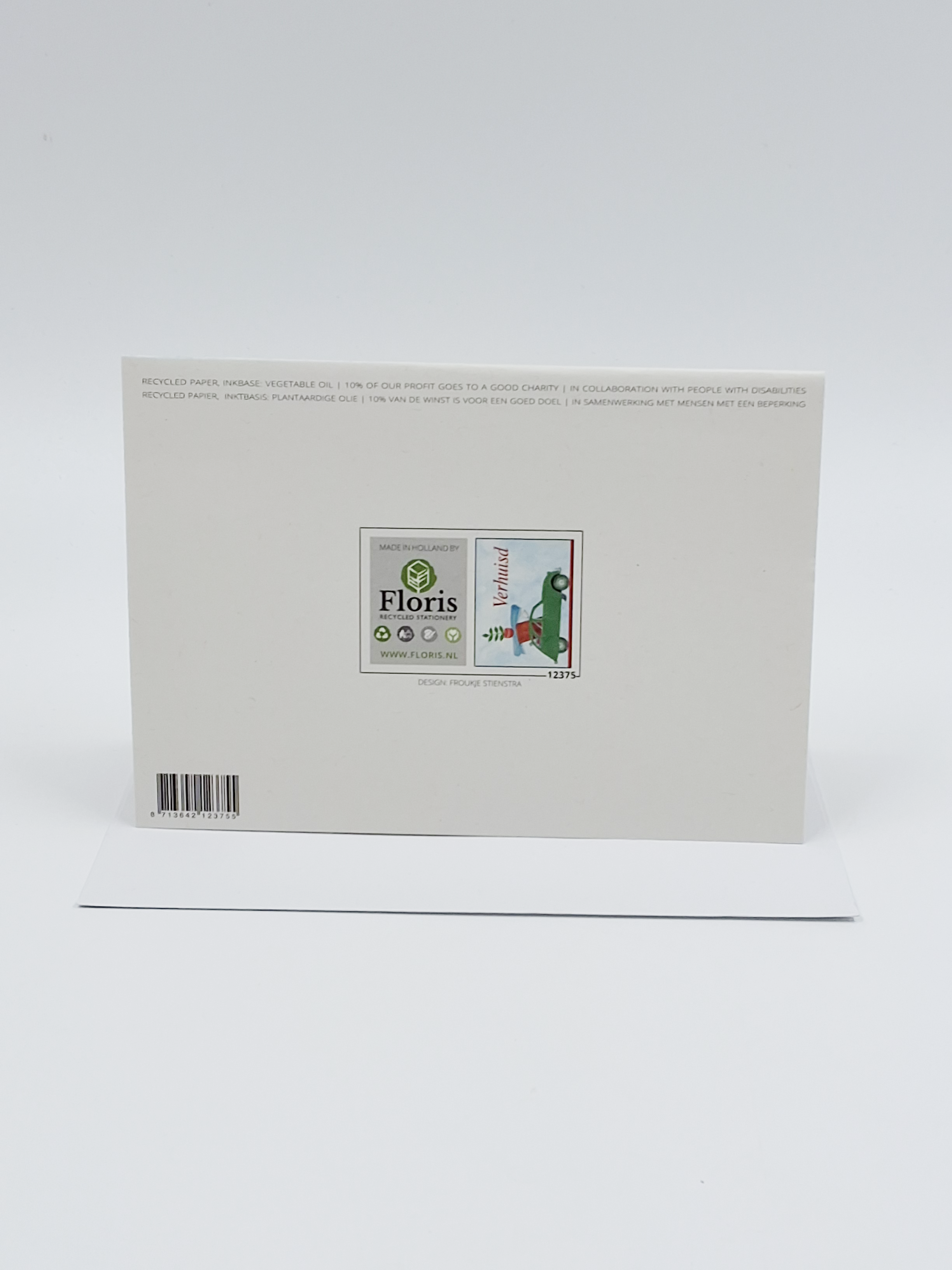 Onze wenskaarten zijn gemaakt van gerecycled papier en bedrukt met inkt op basis van plantaardige olie.