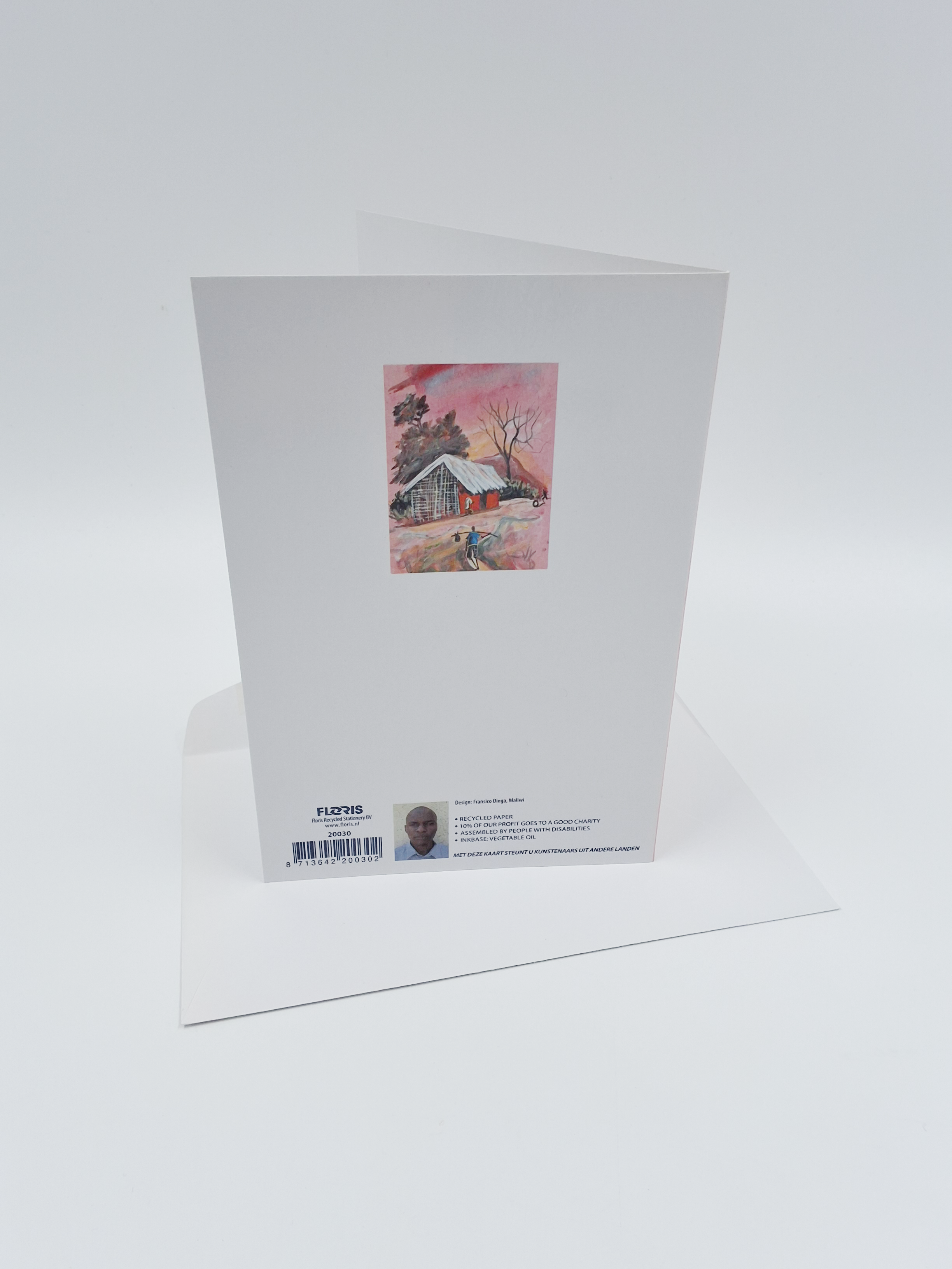 Onze wenskaarten zijn gemaakt van gerecycled papier en bedrukt met inkt op basis van plantaardige olie.