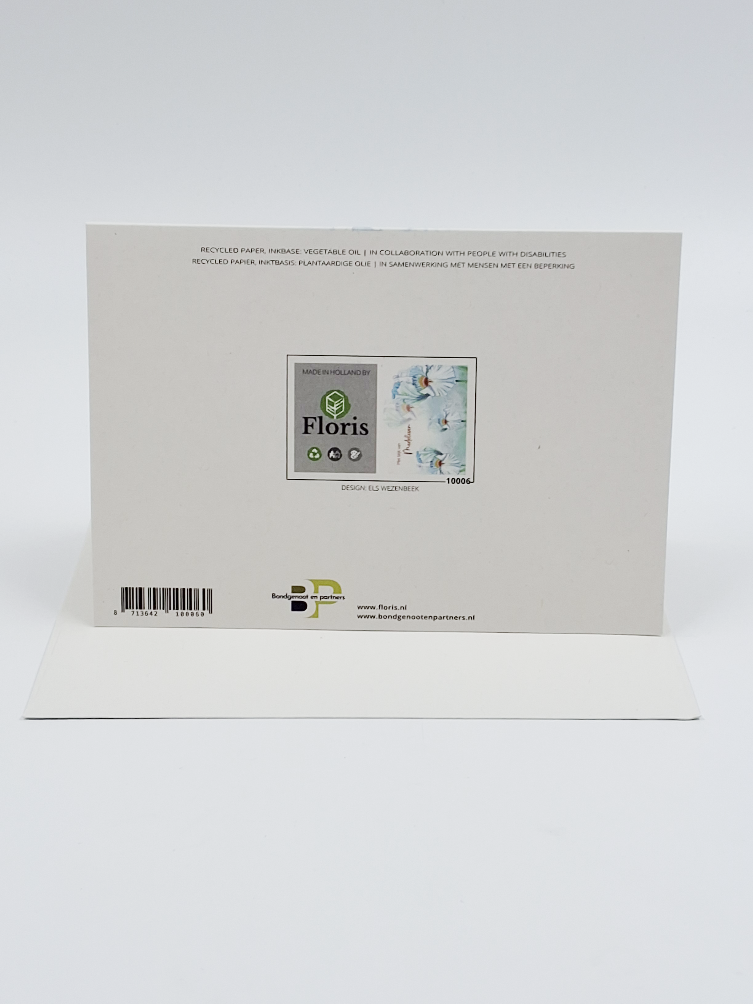 Onze wenskaarten zijn gemaakt van gerecycled papier en bedrukt met inkt op basis van plantaardige olie.