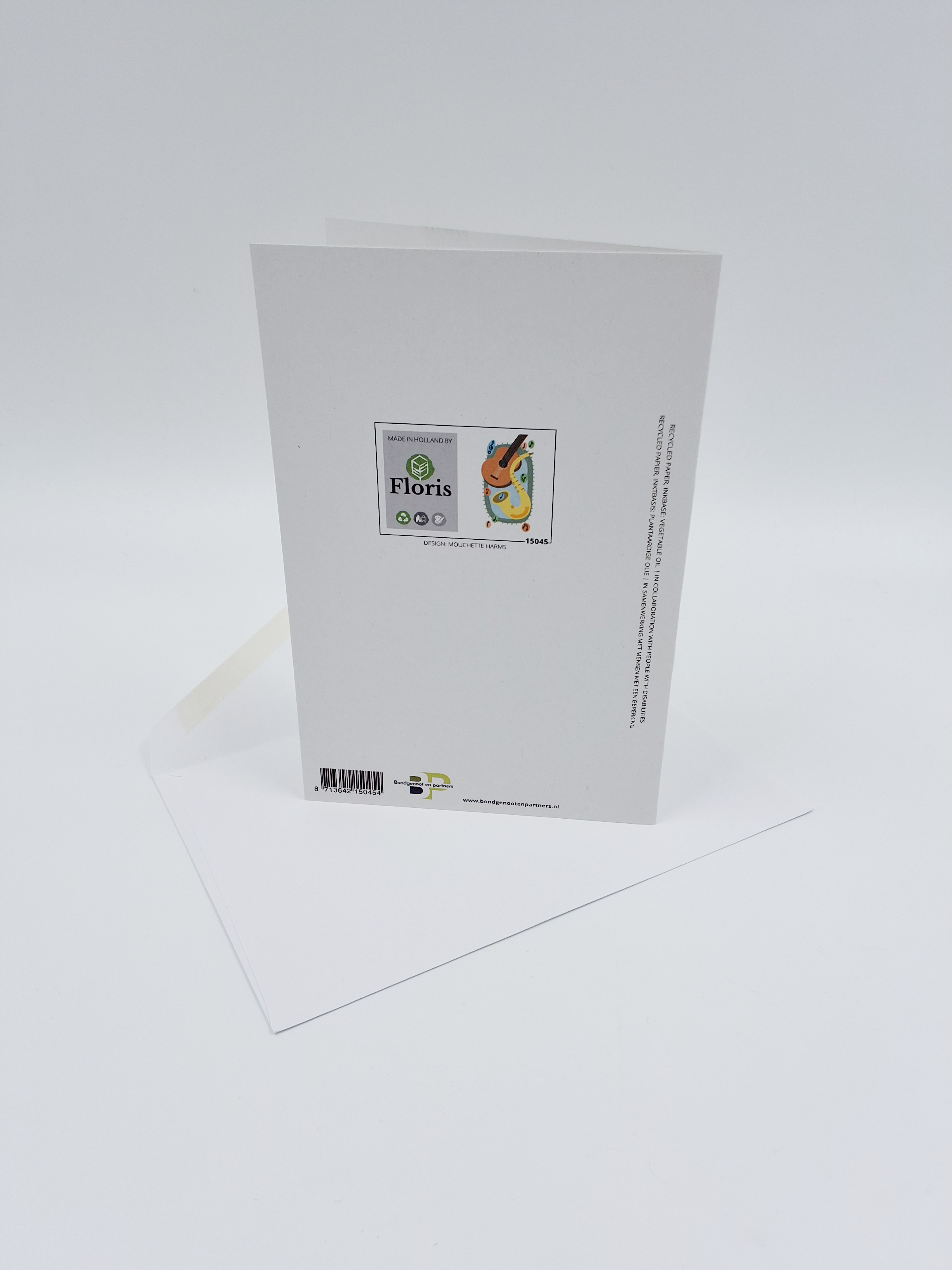 Deze wenskaart is iets groter dan een standaard wenskaart en heeft geen plastiek verpakking. Elke kaart komt met een passende envelop.