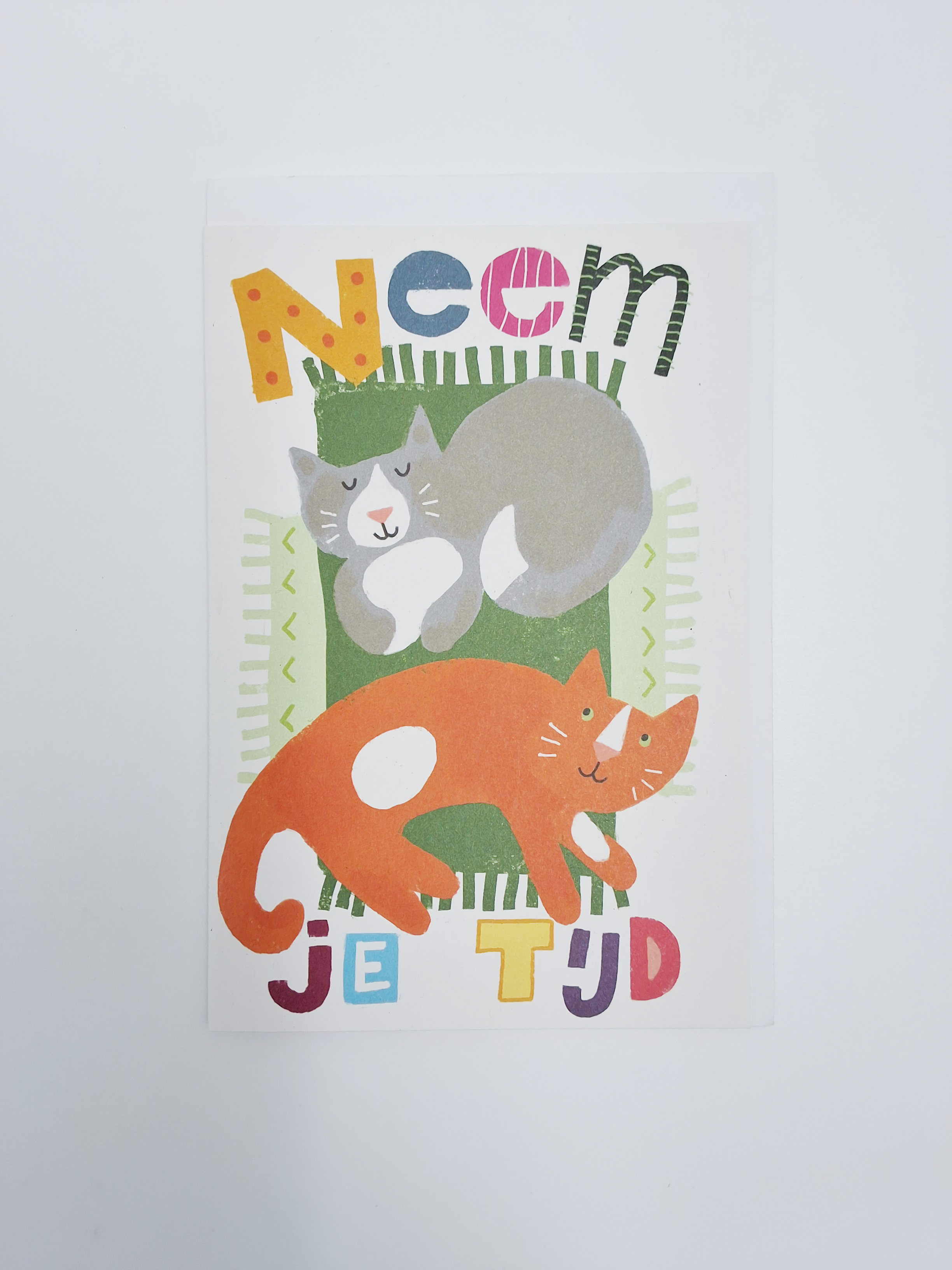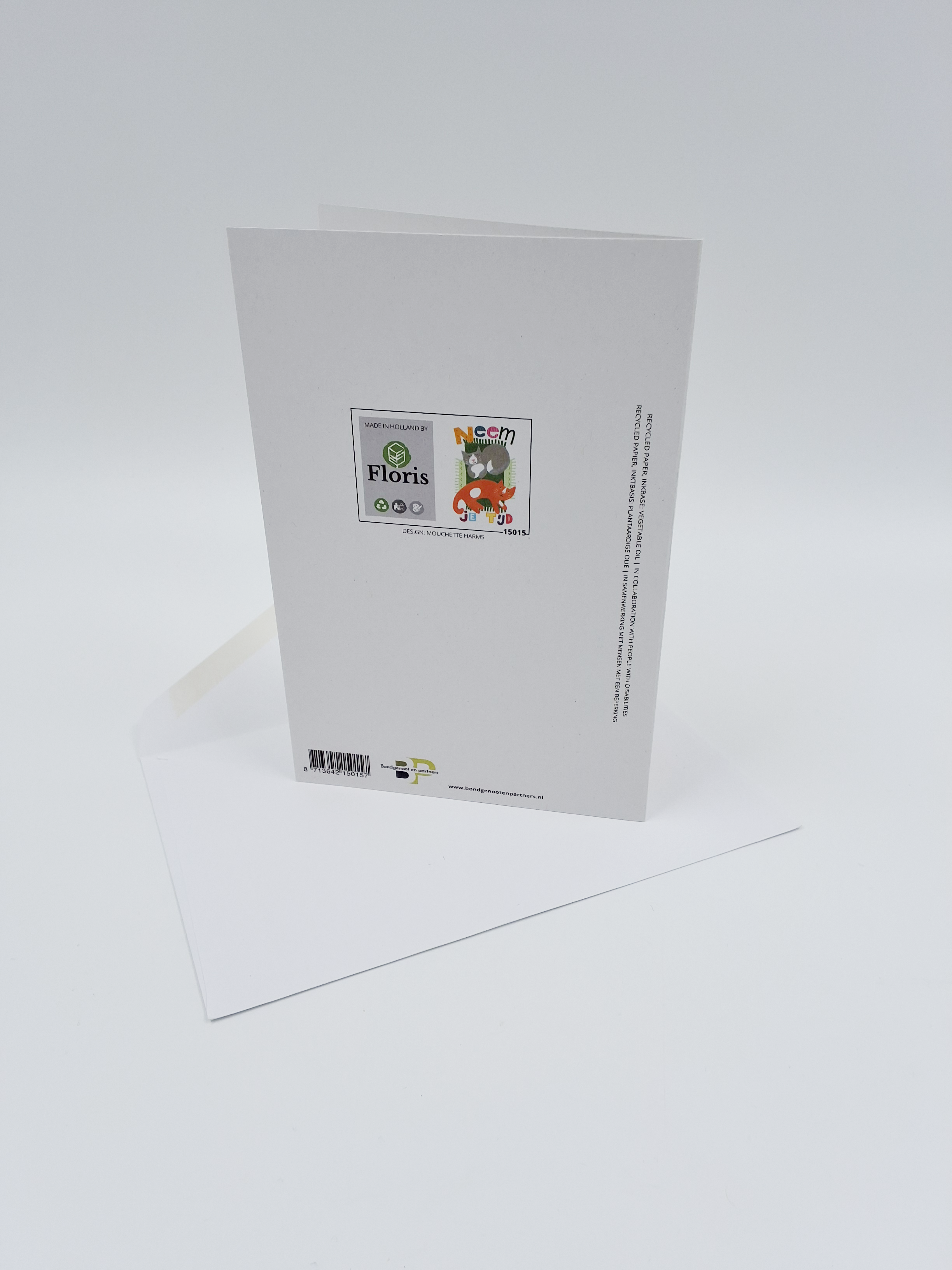 Onze wenskaarten zijn gemaakt van gerecycled papier en bedrukt met inkt op basis van plantaardige olie.