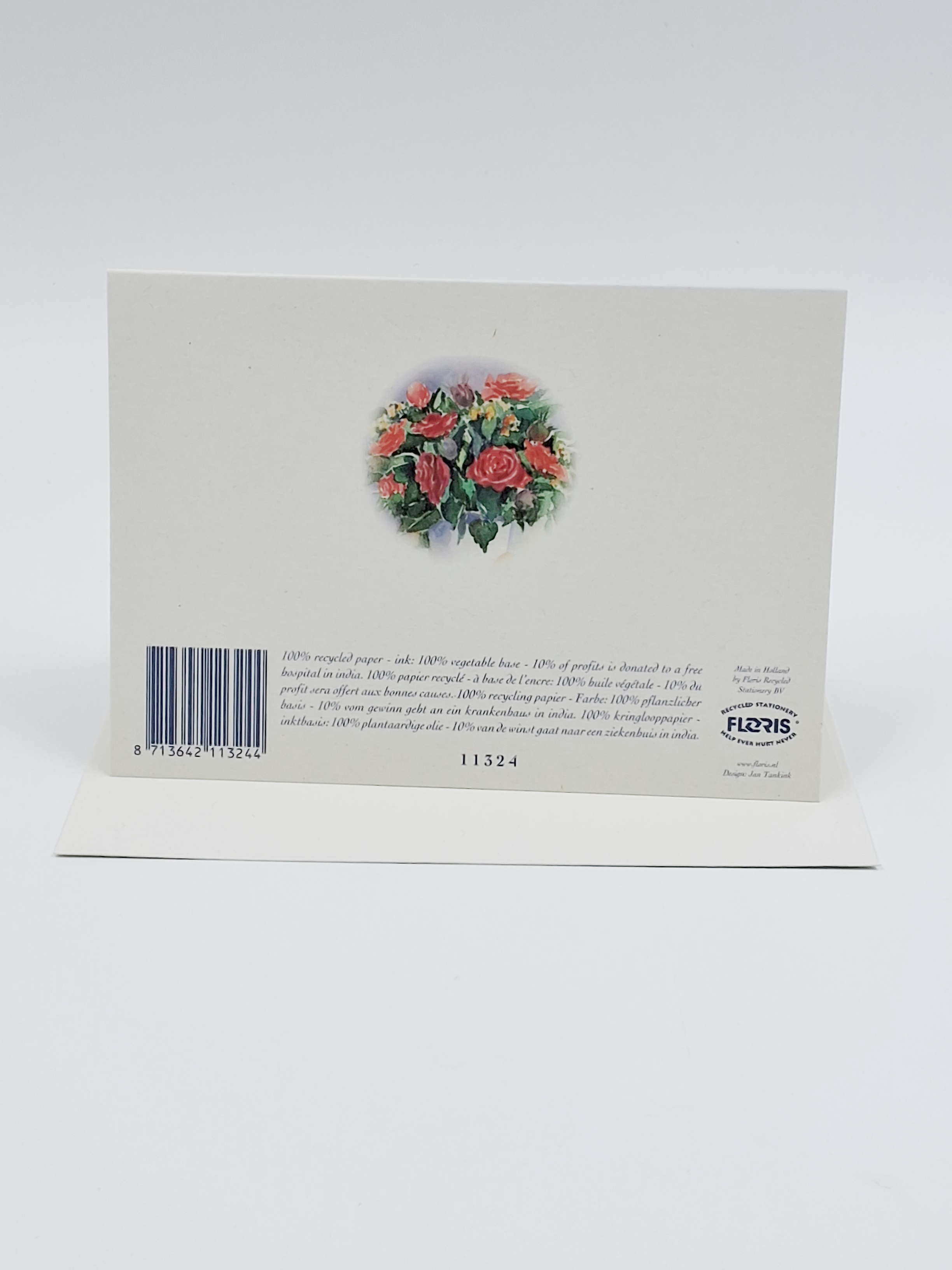 Onze wenskaarten zijn gemaakt van gerecycled papier en bedrukt met inkt op basis van plantaardige olie.