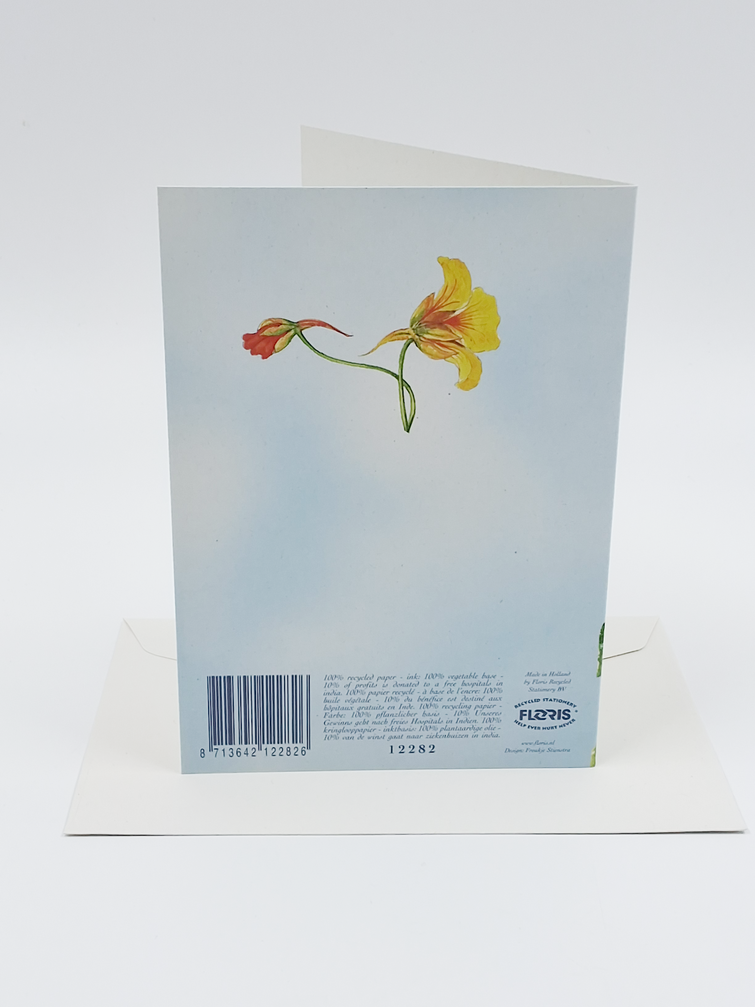 Onze wenskaarten zijn gemaakt van gerecycled papier en bedrukt met inkt op basis van plantaardige olie.