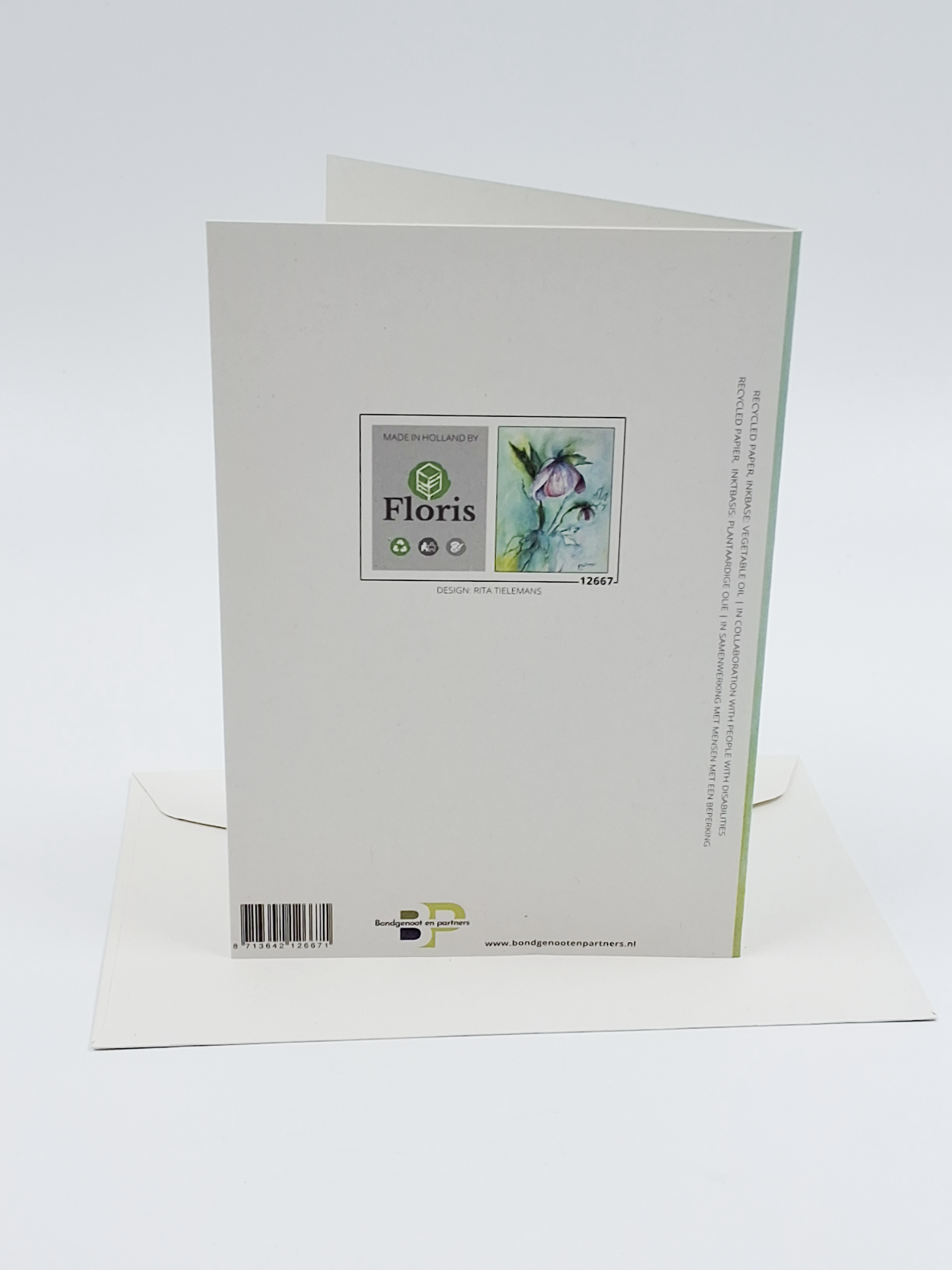 Onze wenskaarten zijn gemaakt van gerecycled papier en bedrukt met inkt op basis van plantaardige olie.