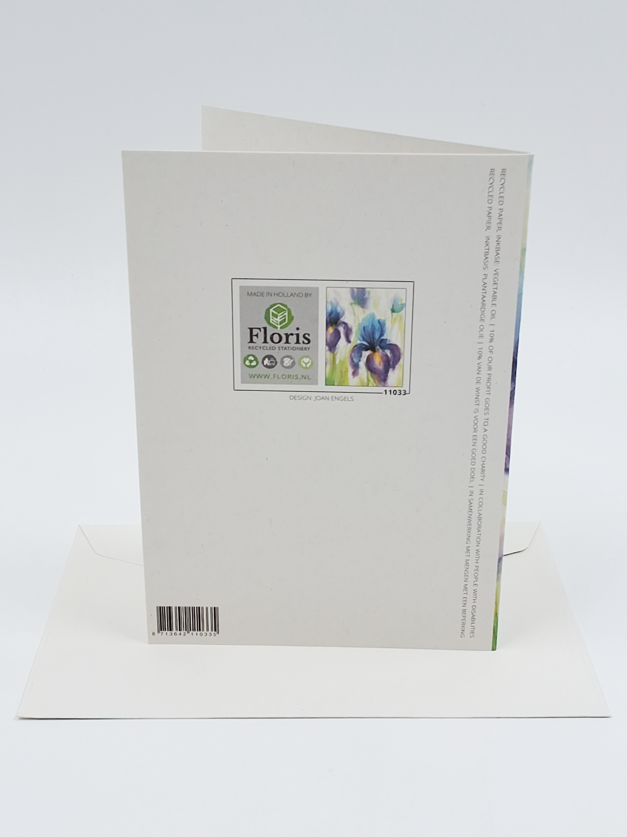 Onze wenskaarten zijn gemaakt van gerecycled papier en bedrukt met inkt op basis van plantaardige olie.