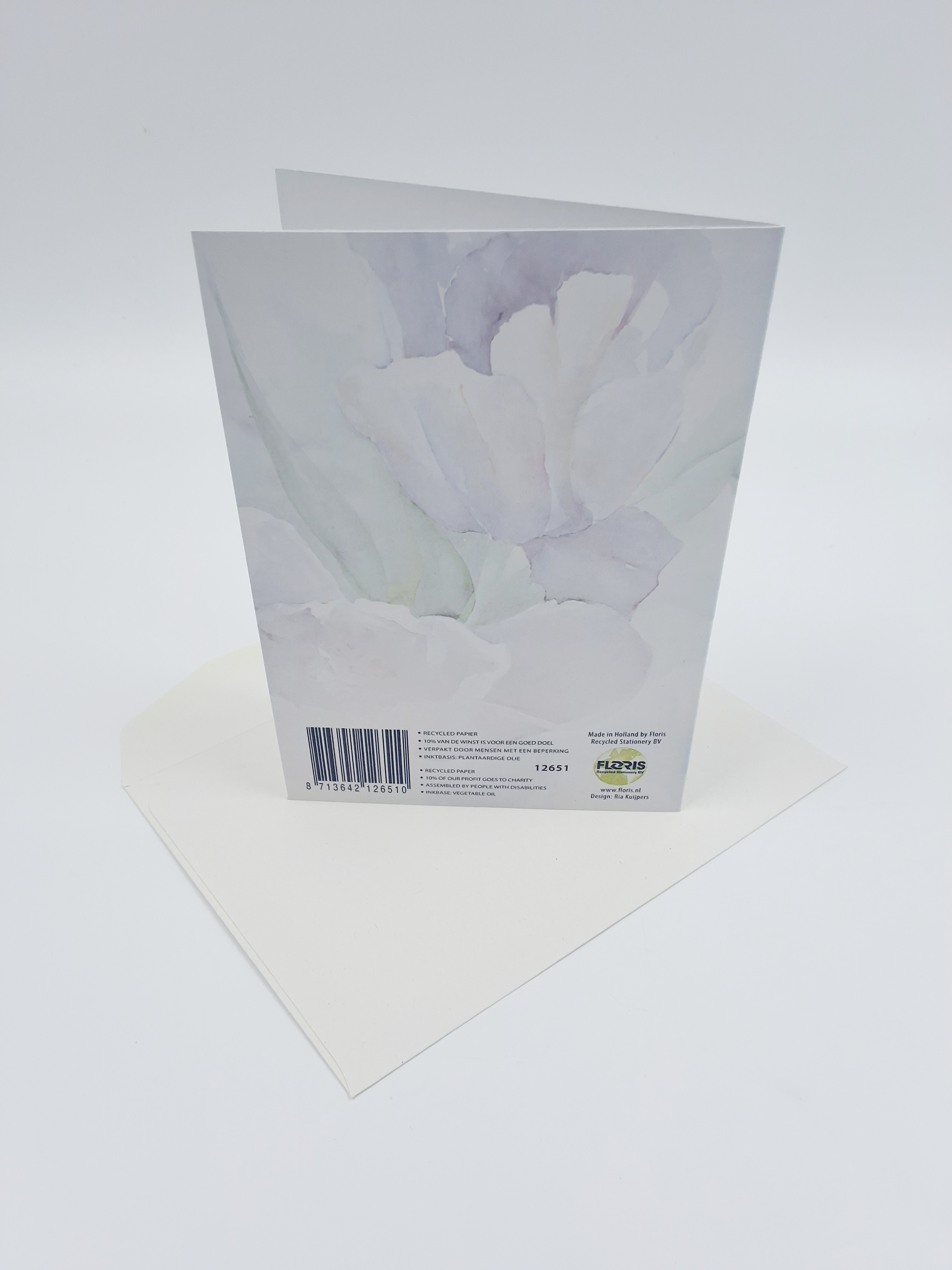 Onze wenskaarten zijn gemaakt van gerecycled papier en bedrukt met inkt op basis van plantaardige olie.