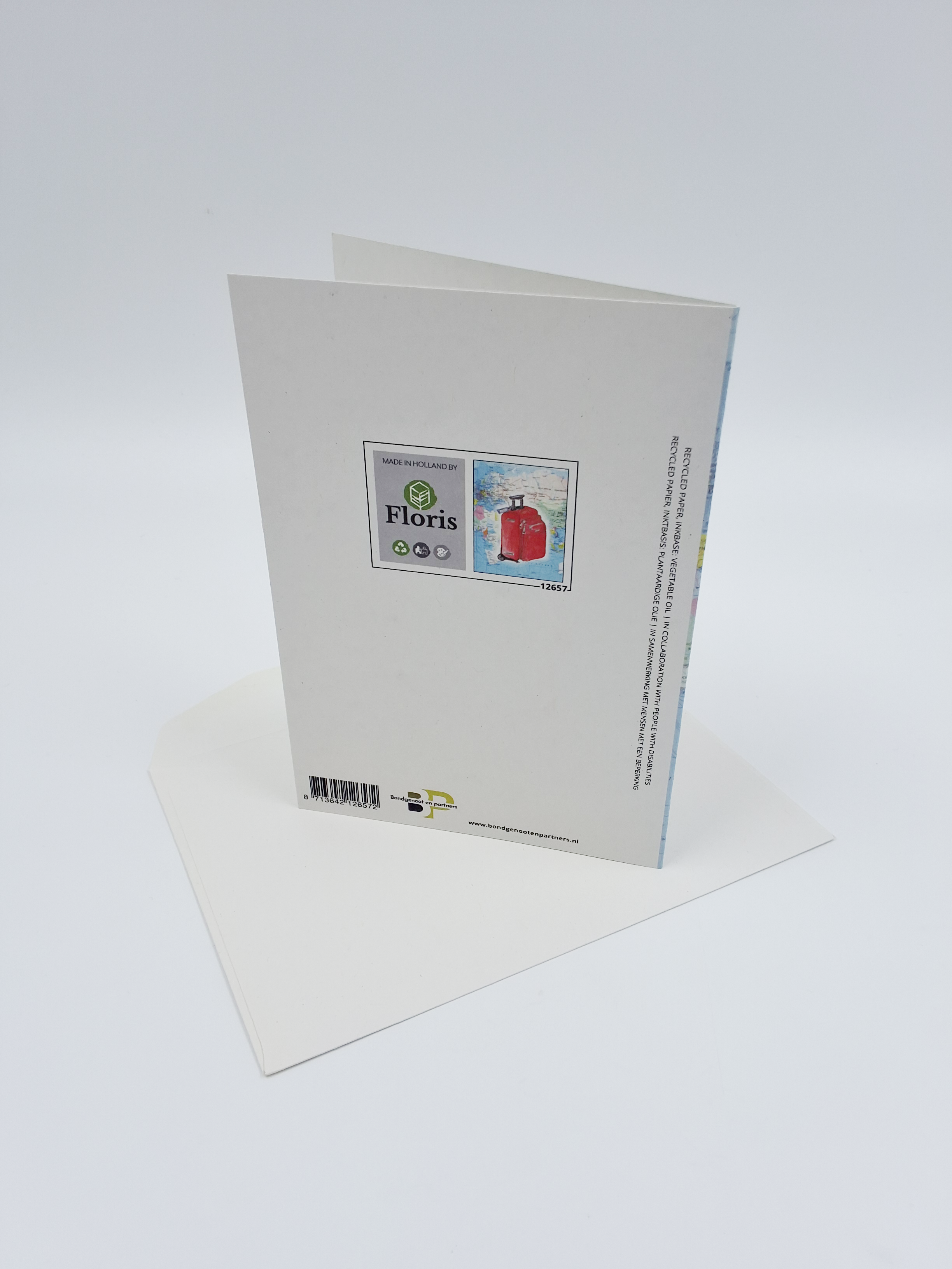 Onze wenskaarten zijn gemaakt van gerecycled papier en bedrukt met inkt op basis van plantaardige olie.