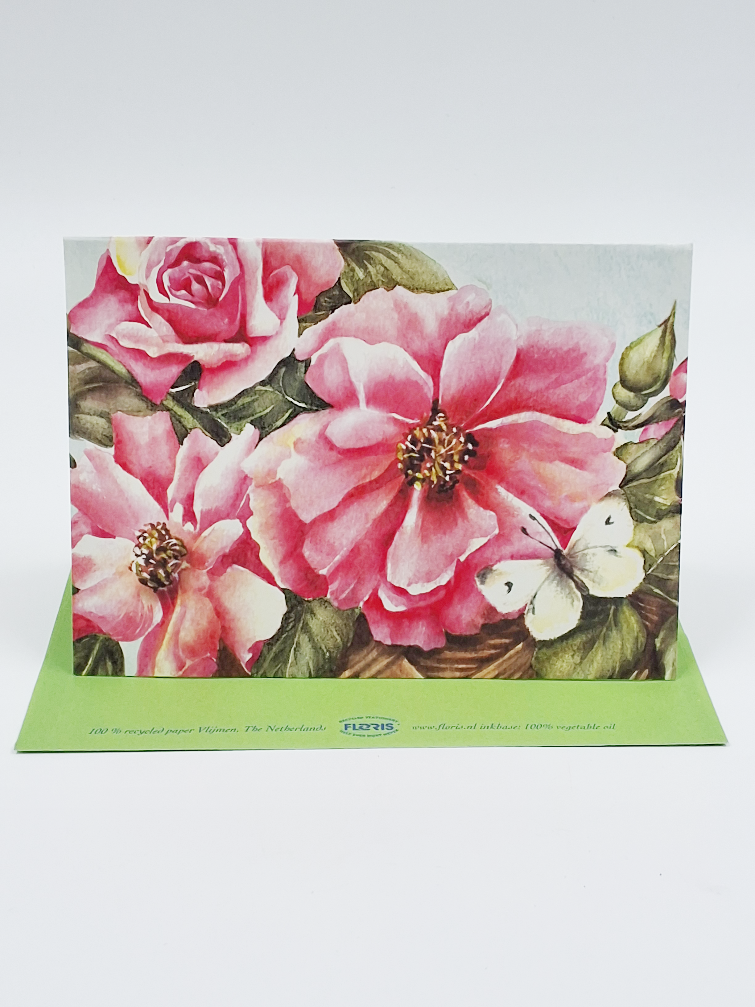 Onze wenskaarten zijn gemaakt van gerecycled papier en bedrukt met inkt op basis van plantaardige olie.