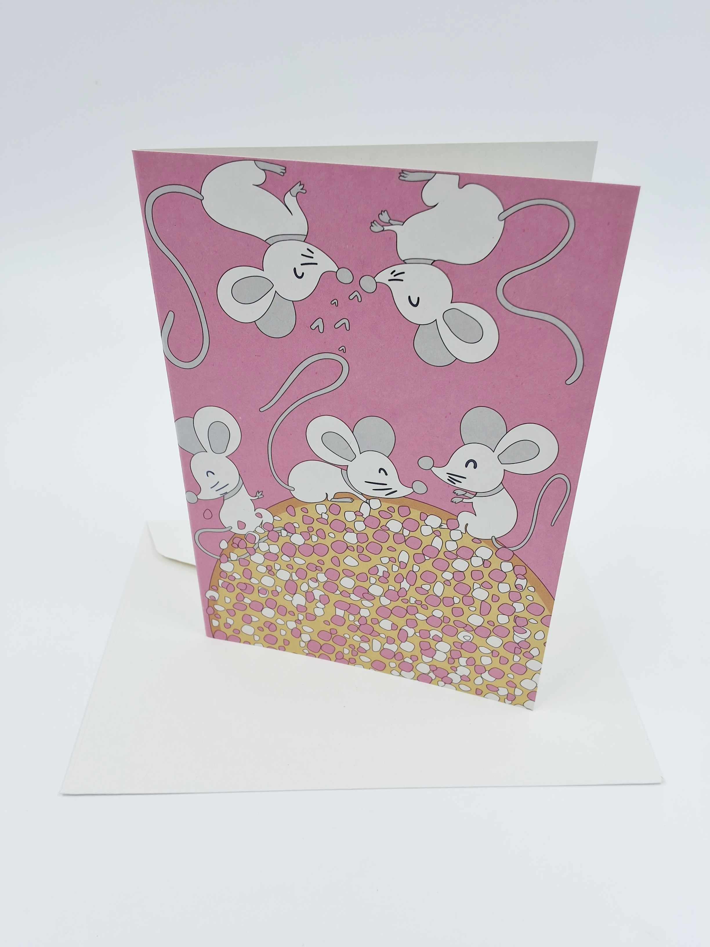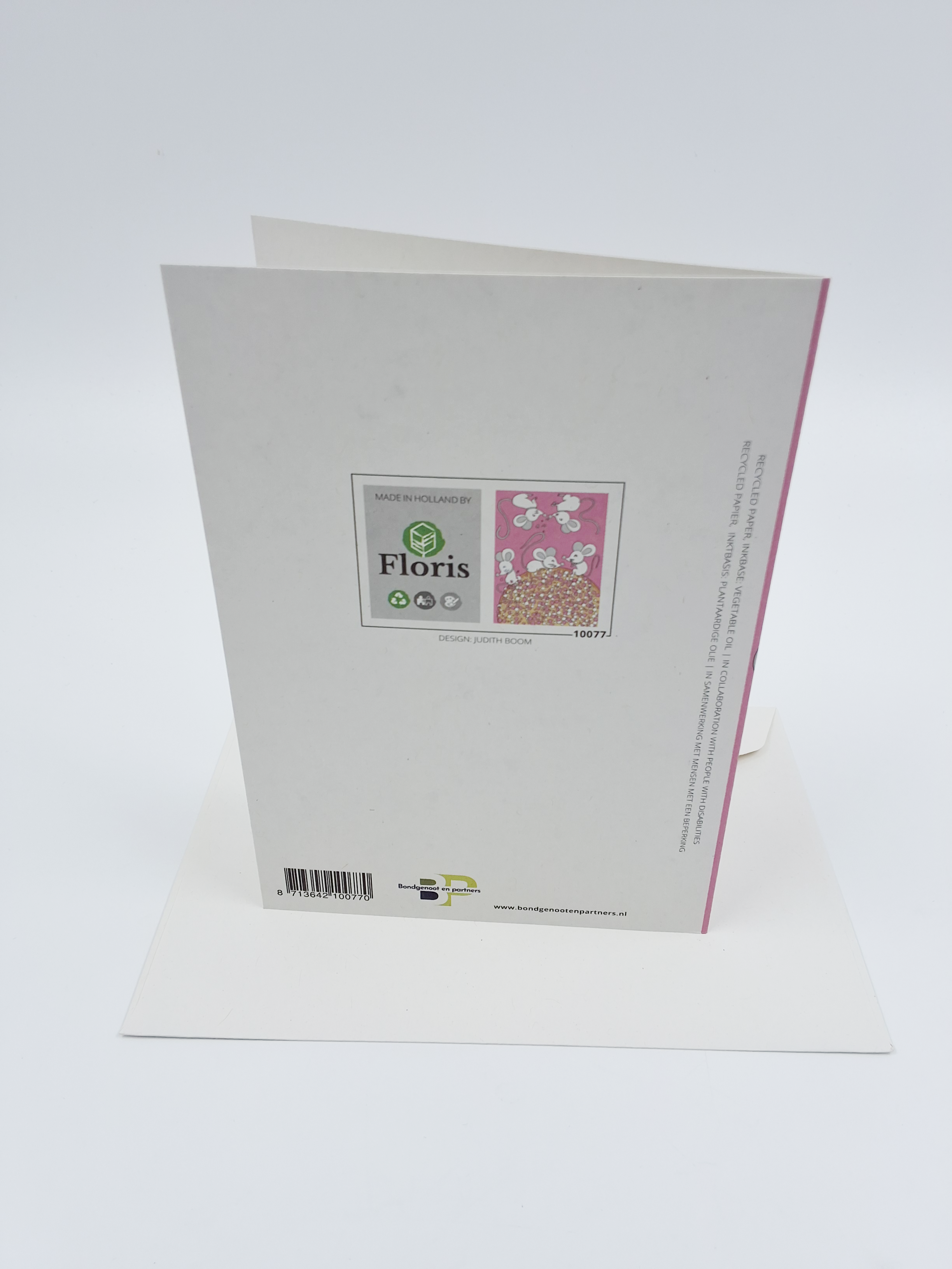 Onze wenskaarten zijn gemaakt van gerecycled papier en bedrukt met inkt op basis van plantaardige olie.