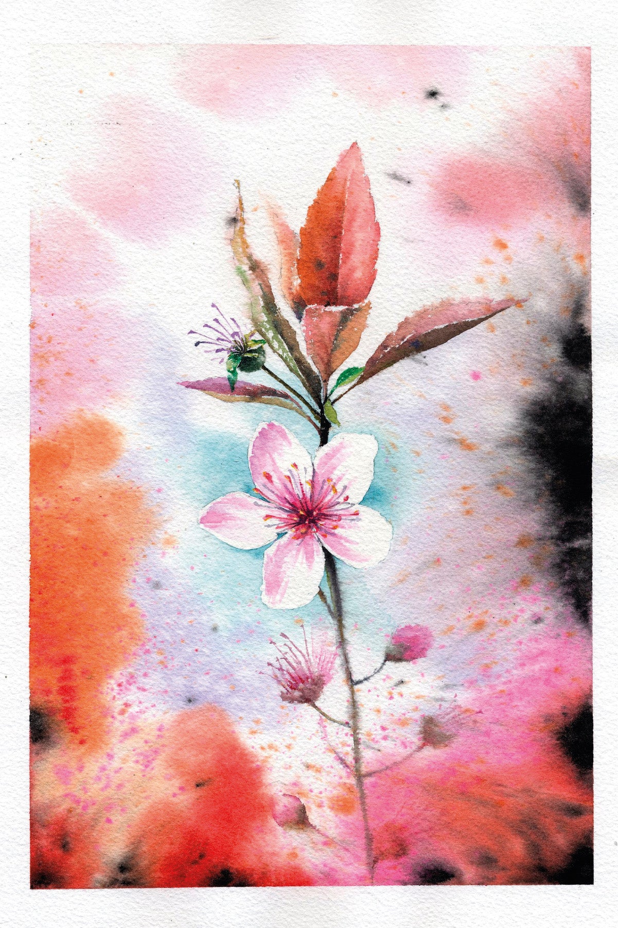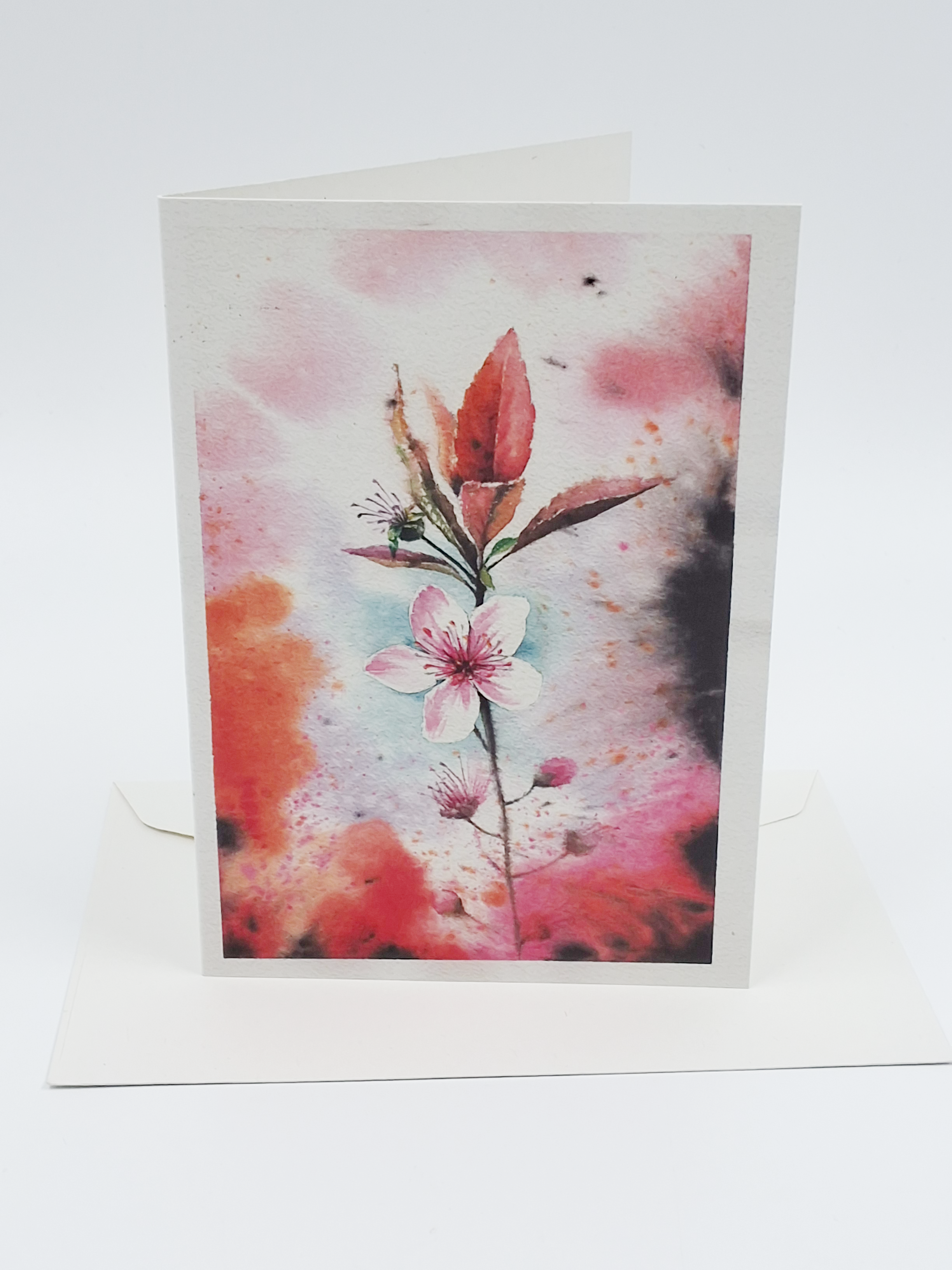 Wenskaart roze kersenbloesem