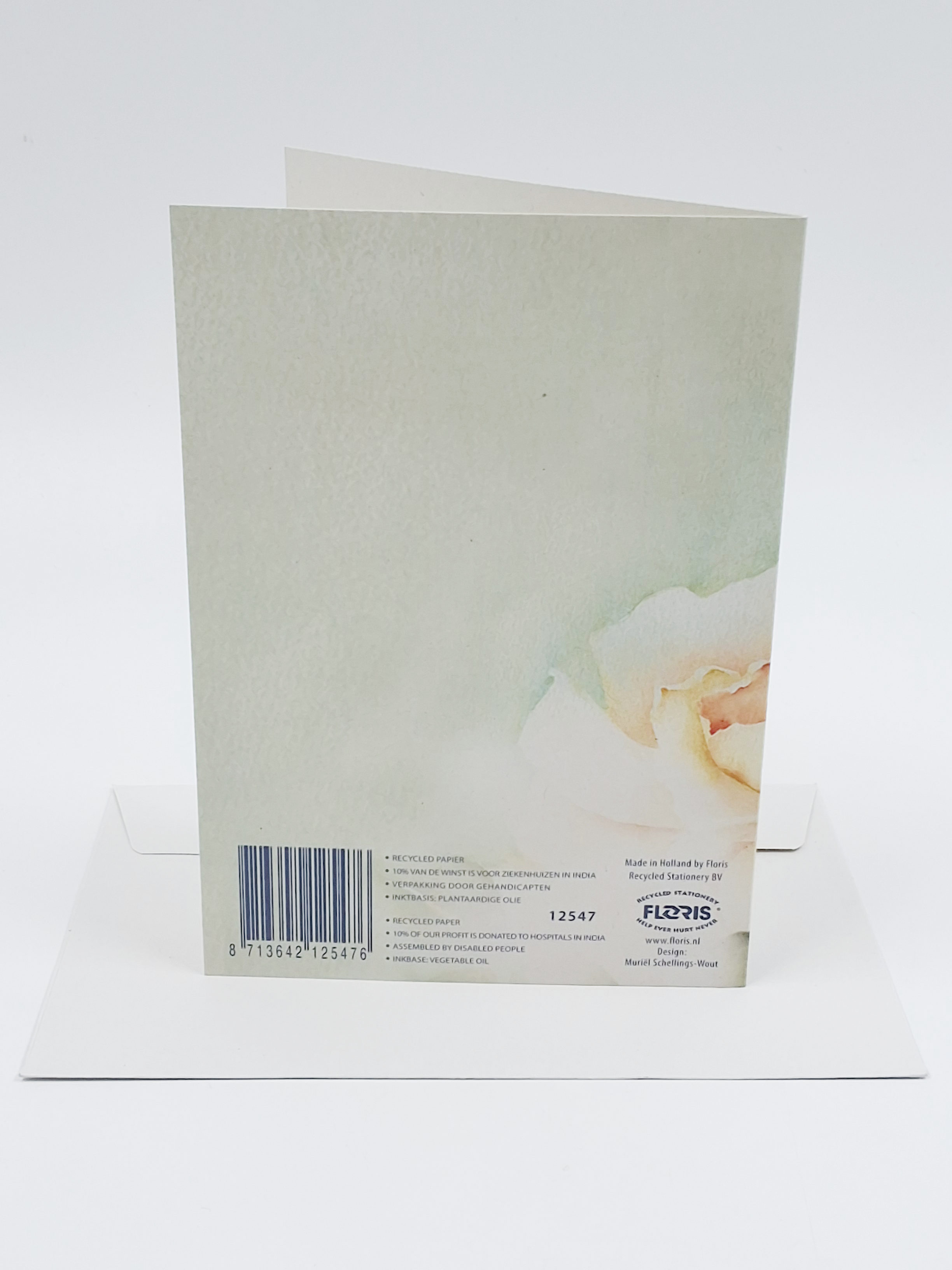 Onze wenskaarten zijn gemaakt van gerecycled papier en bedrukt met inkt op basis van plantaardige olie.