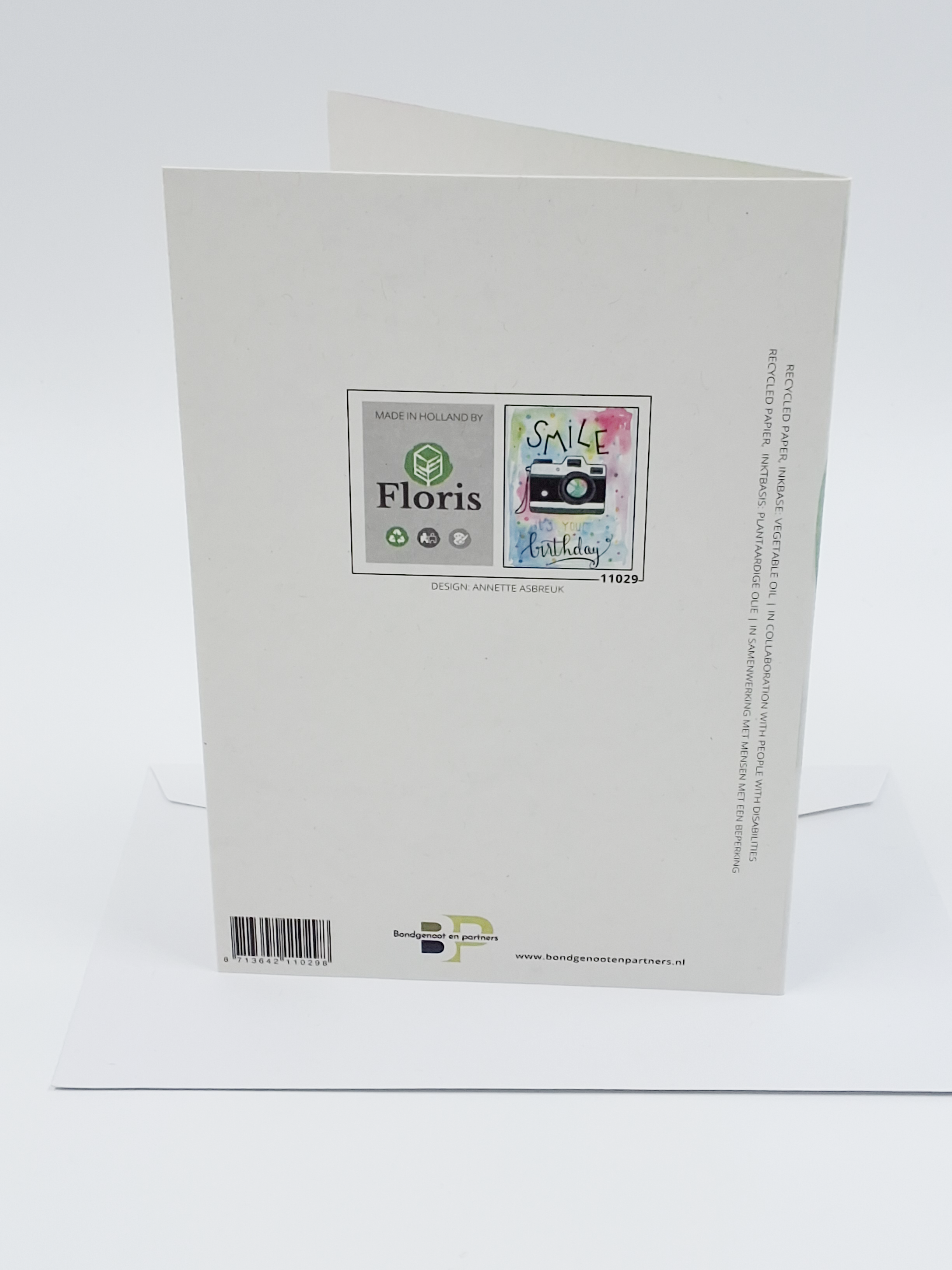 Onze wenskaarten zijn gemaakt van gerecycled papier en bedrukt met inkt op basis van plantaardige olie.