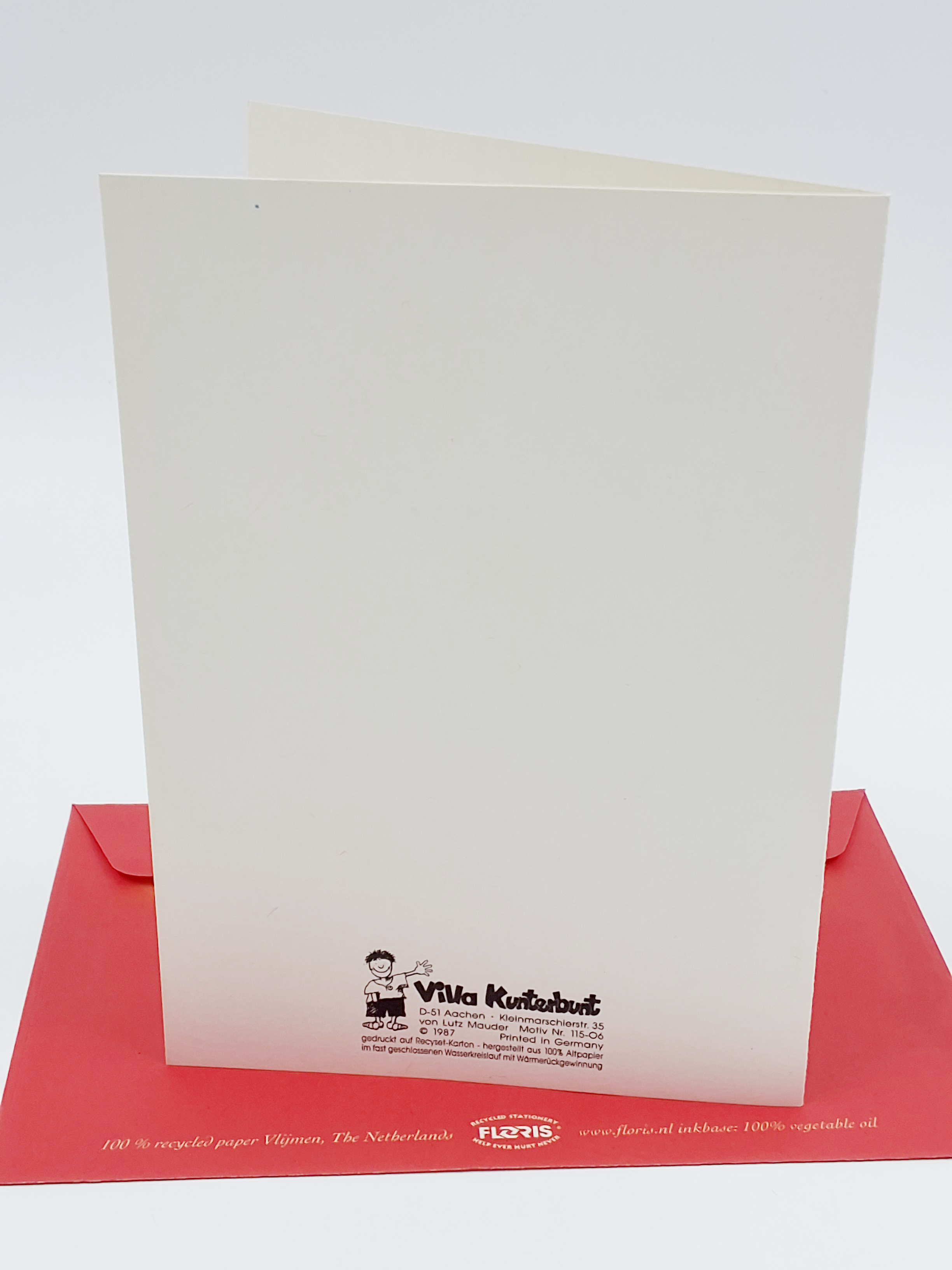 Onze wenskaarten zijn gemaakt van gerecycled papier en bedrukt met inkt op basis van plantaardige olie.