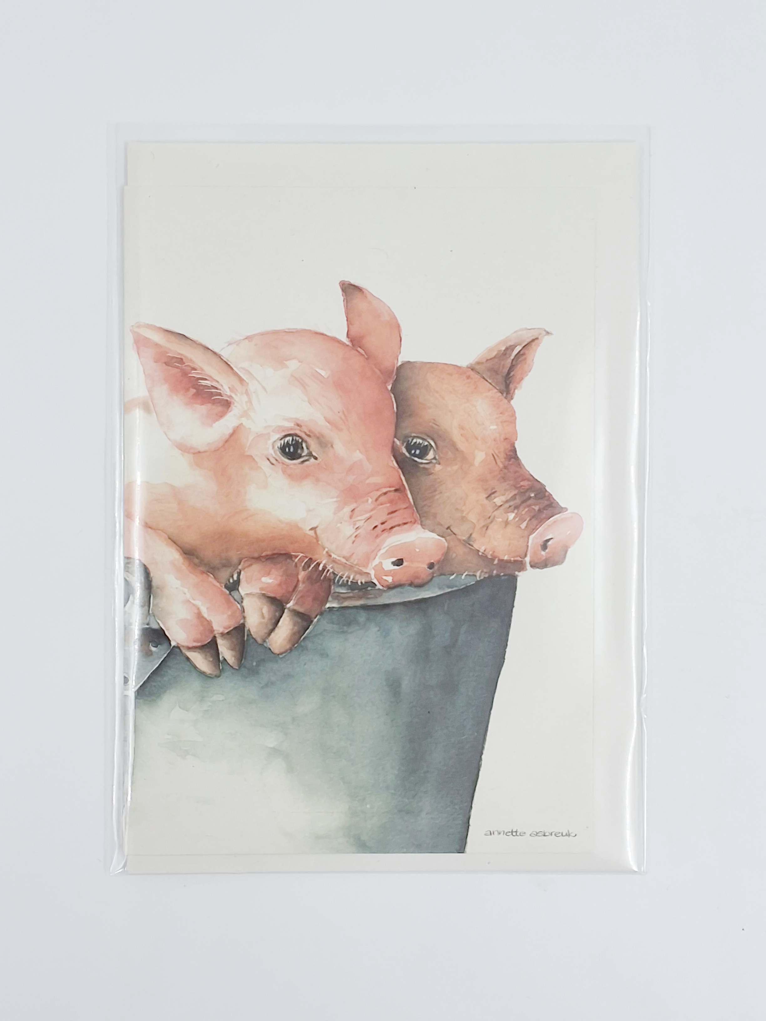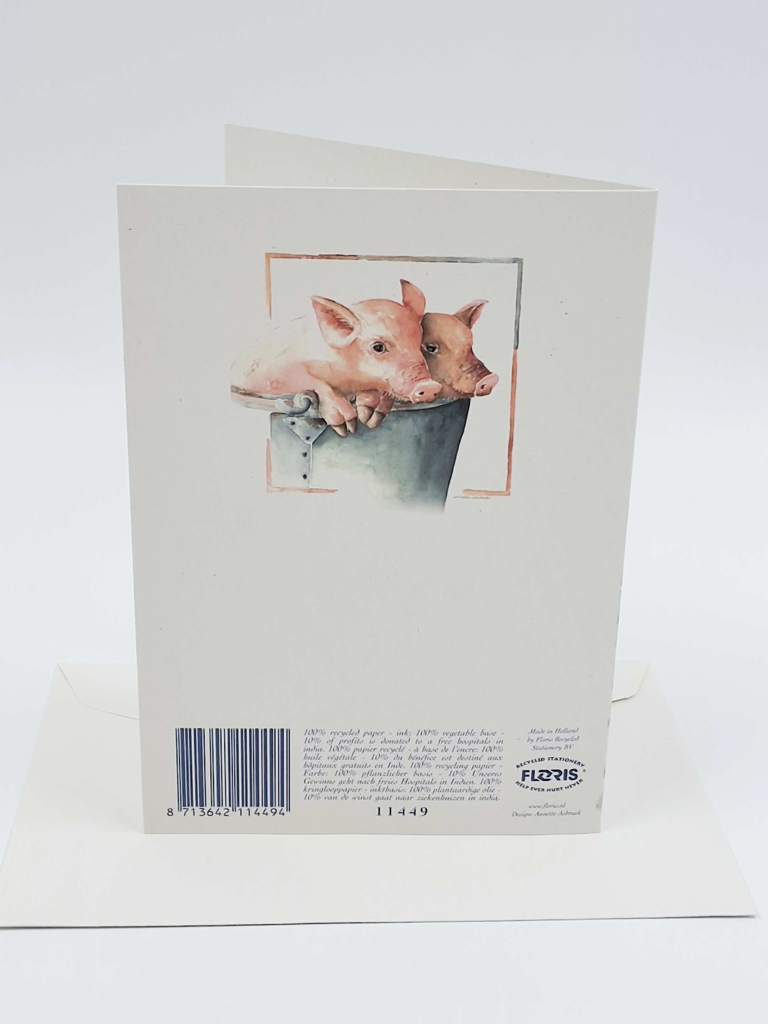 Onze wenskaarten zijn gemaakt van gerecycled papier en bedrukt met inkt op basis van plantaardige olie.