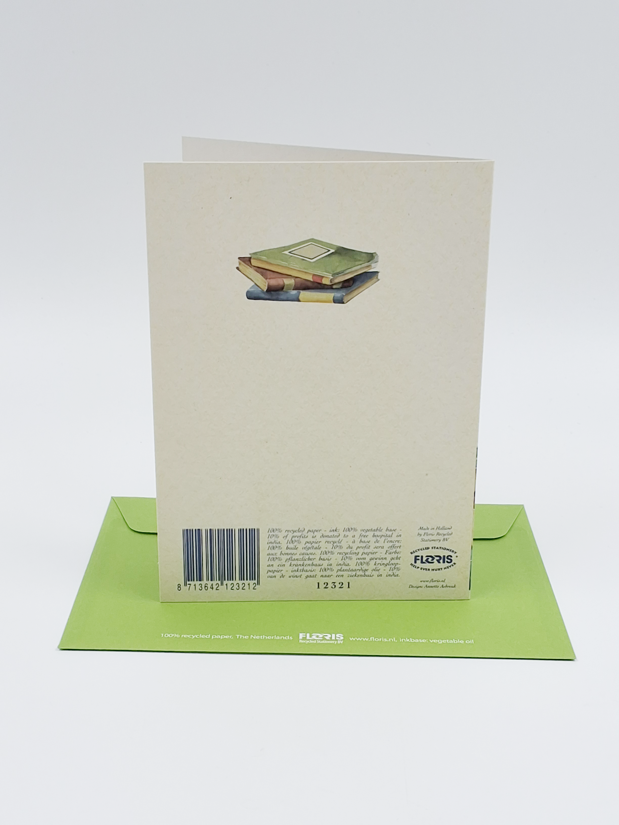 Onze wenskaarten zijn gemaakt van gerecycled papier en bedrukt met inkt op basis van plantaardige olie.