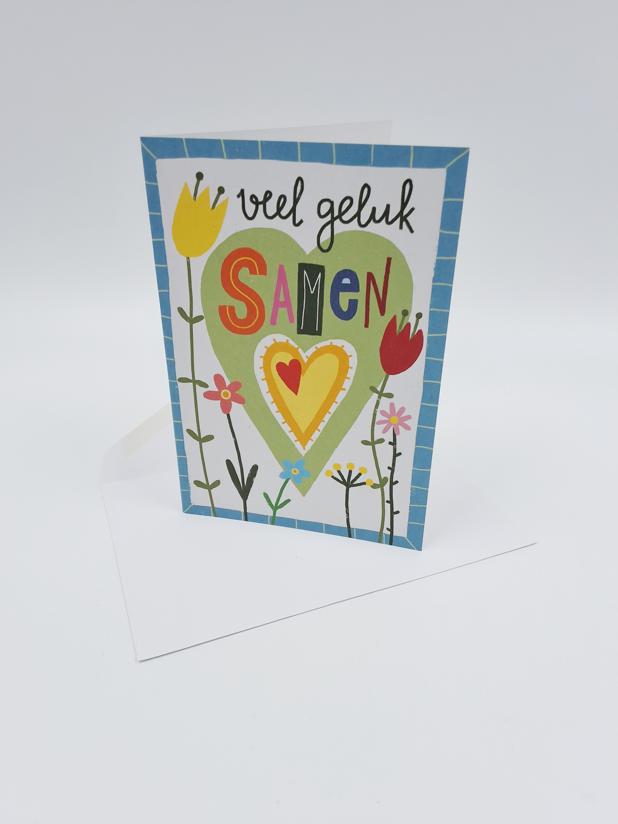 Onze wenskaarten zijn gemaakt van gerecycled papier en bedrukt met inkt op basis van plantaardige olie.