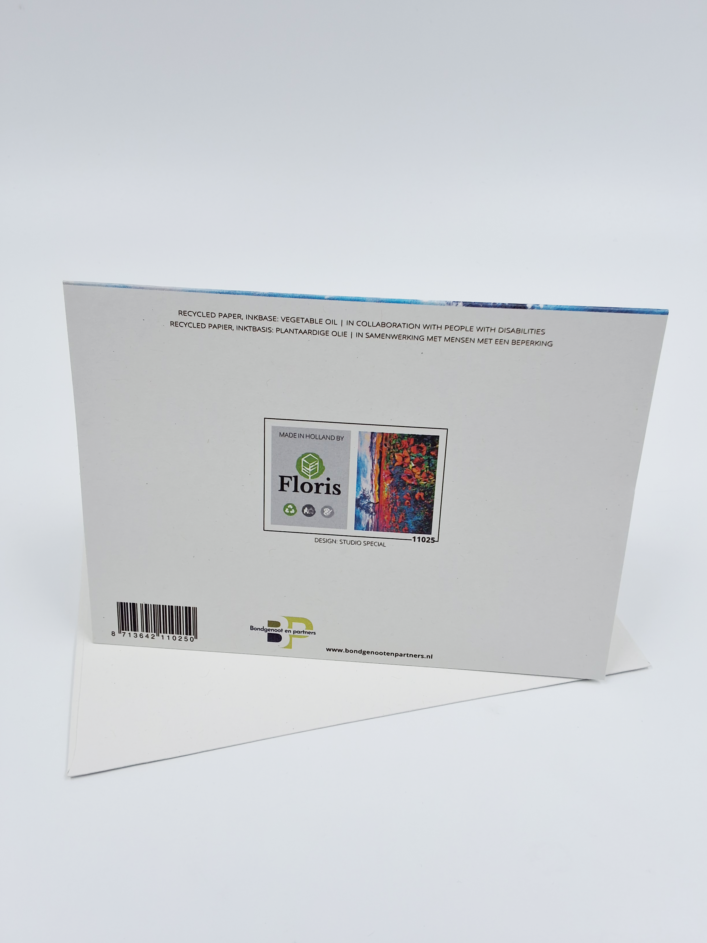 Onze wenskaarten zijn gemaakt van gerecycled papier en bedrukt met inkt op basis van plantaardige olie.