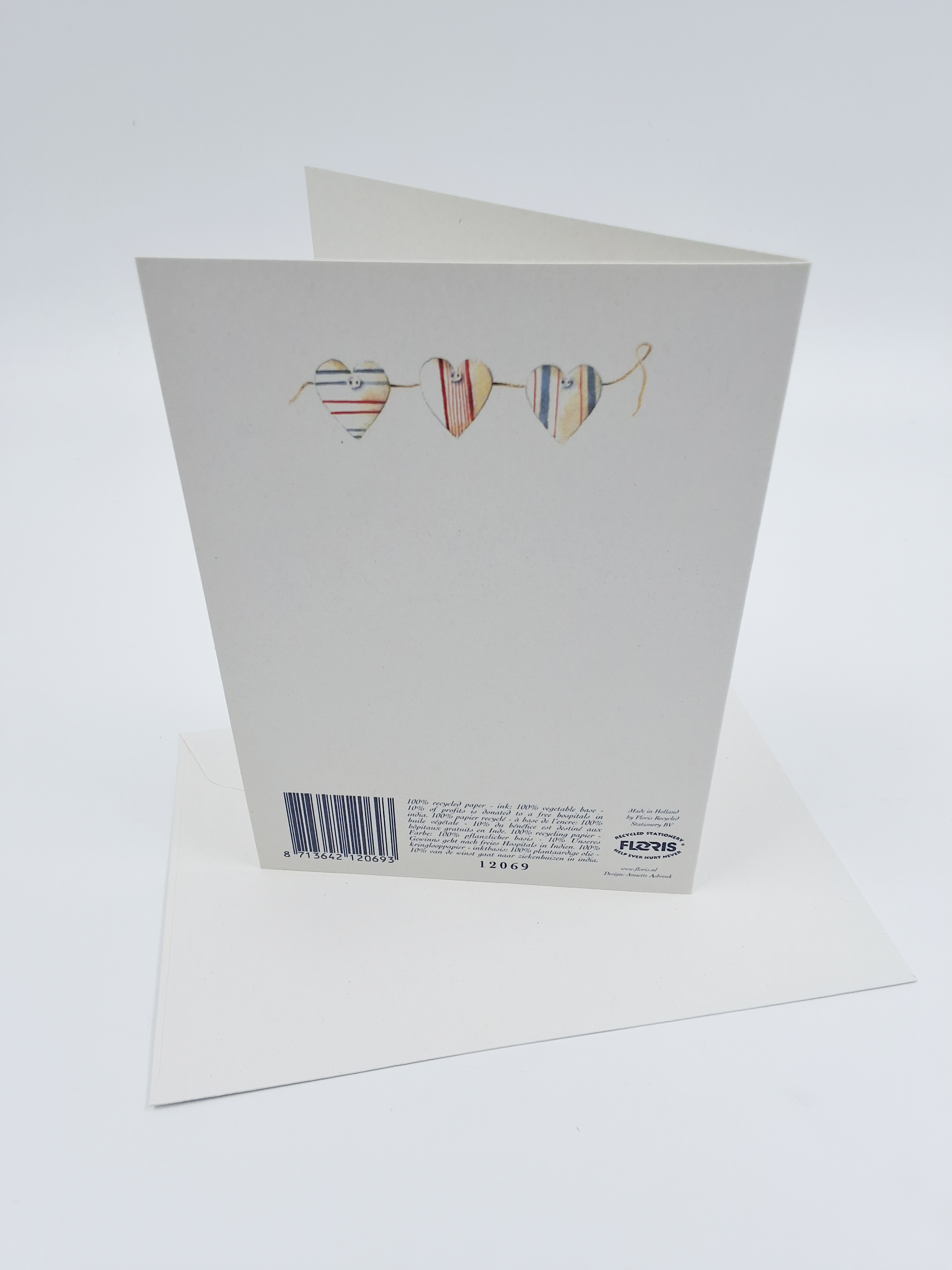 Onze wenskaarten zijn gemaakt van gerecycled papier en bedrukt met inkt op basis van plantaardige olie.