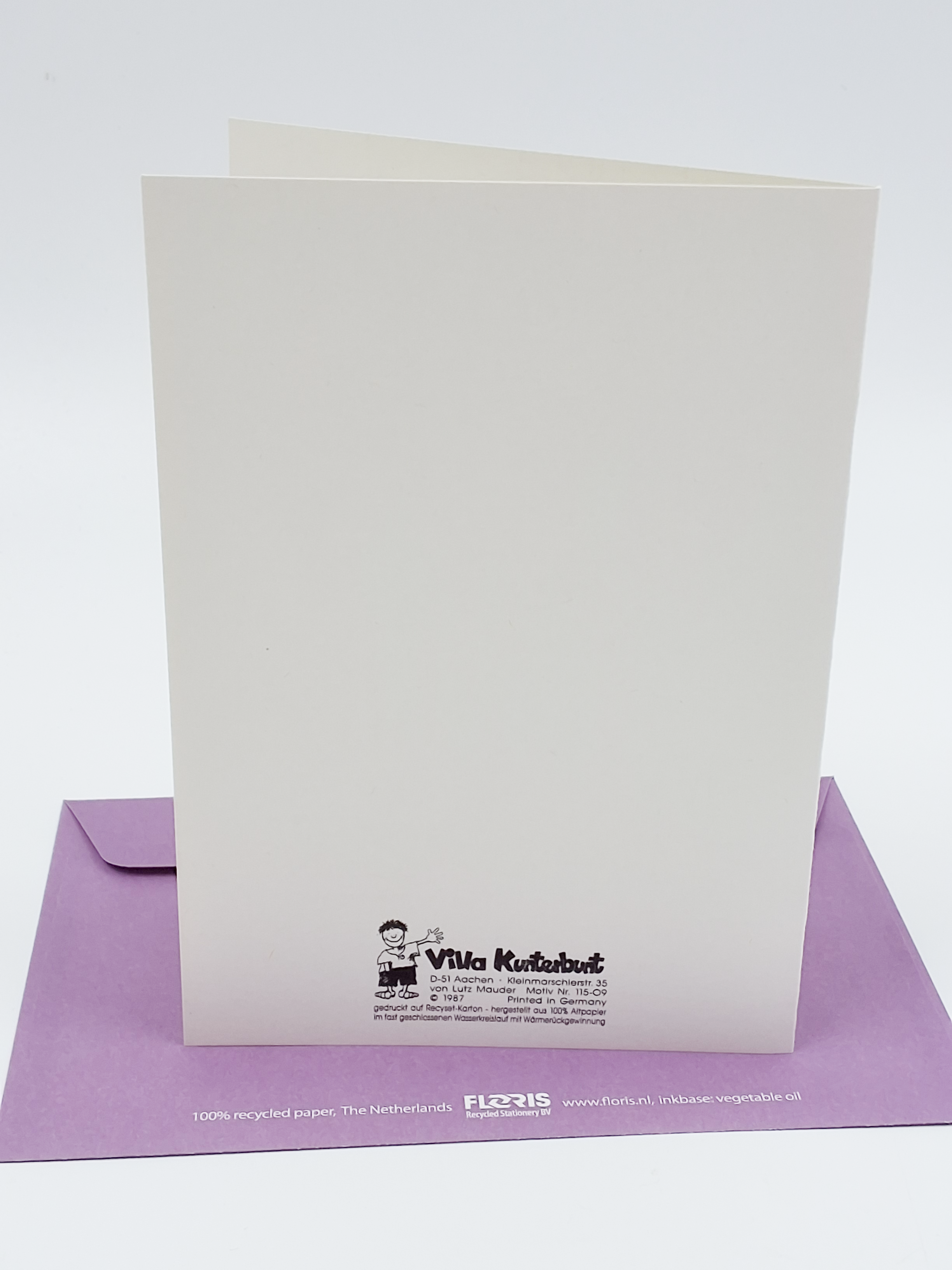 Onze wenskaarten zijn gemaakt van gerecycled papier en bedrukt met inkt op basis van plantaardige olie.