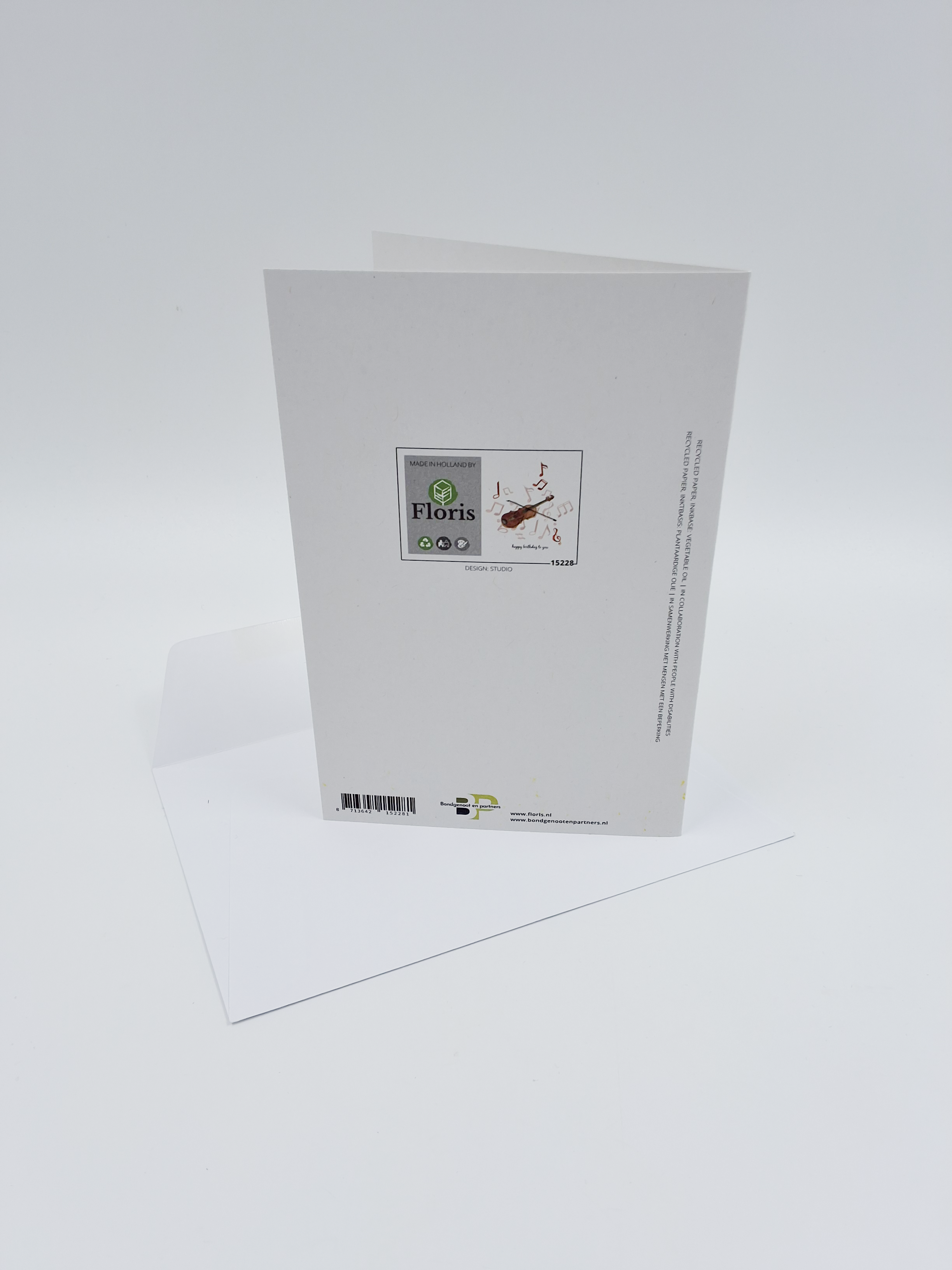 Deze wenskaart is iets groter dan een standaard wenskaart en heeft geen plastiek verpakking. Elke kaart komt met een passende envelop.