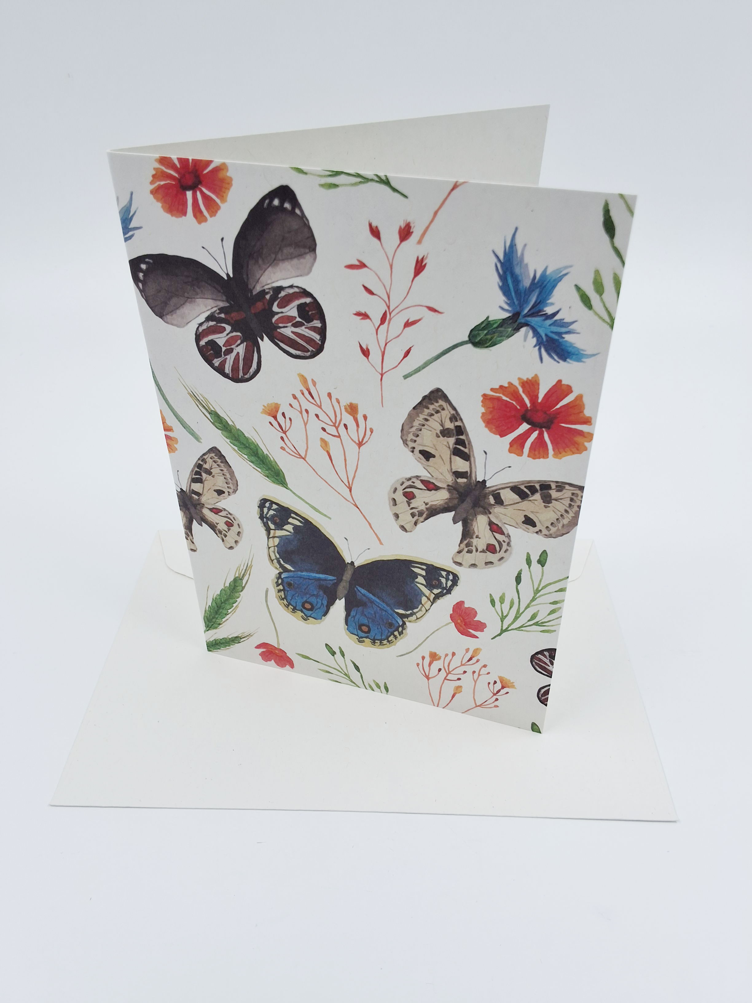 Wenskaart vlinder, bloem