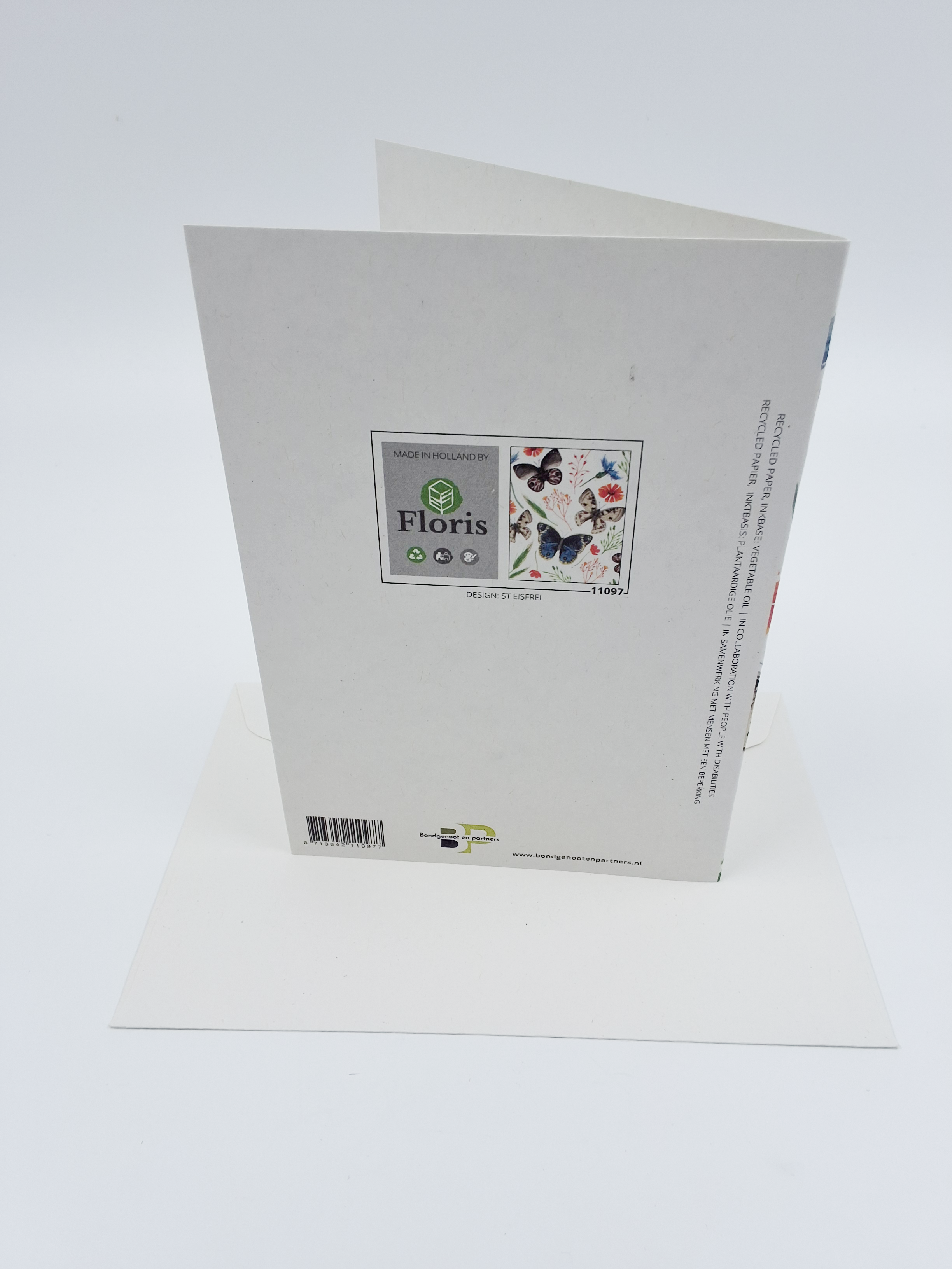 Onze wenskaarten zijn gemaakt van gerecycled papier en bedrukt met inkt op basis van plantaardige olie.