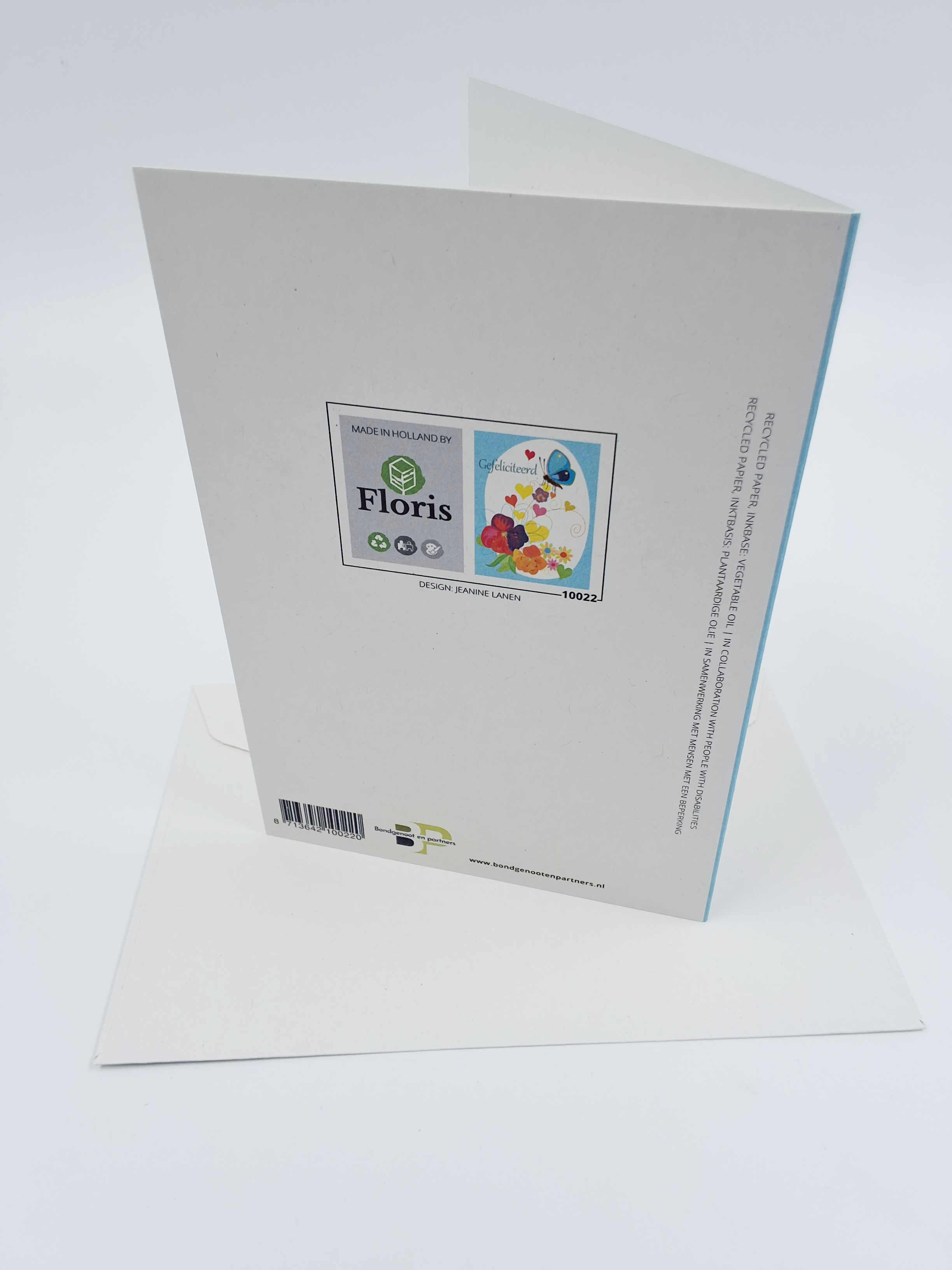 Onze wenskaarten zijn gemaakt van gerecycled papier en bedrukt met inkt op basis van plantaardige olie.