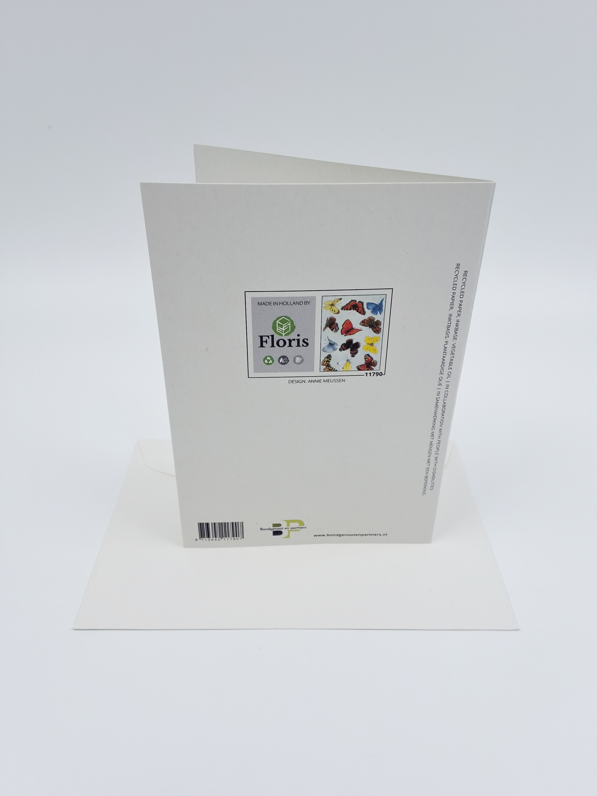 Onze wenskaarten zijn gemaakt van gerecycled papier en bedrukt met inkt op basis van plantaardige olie.