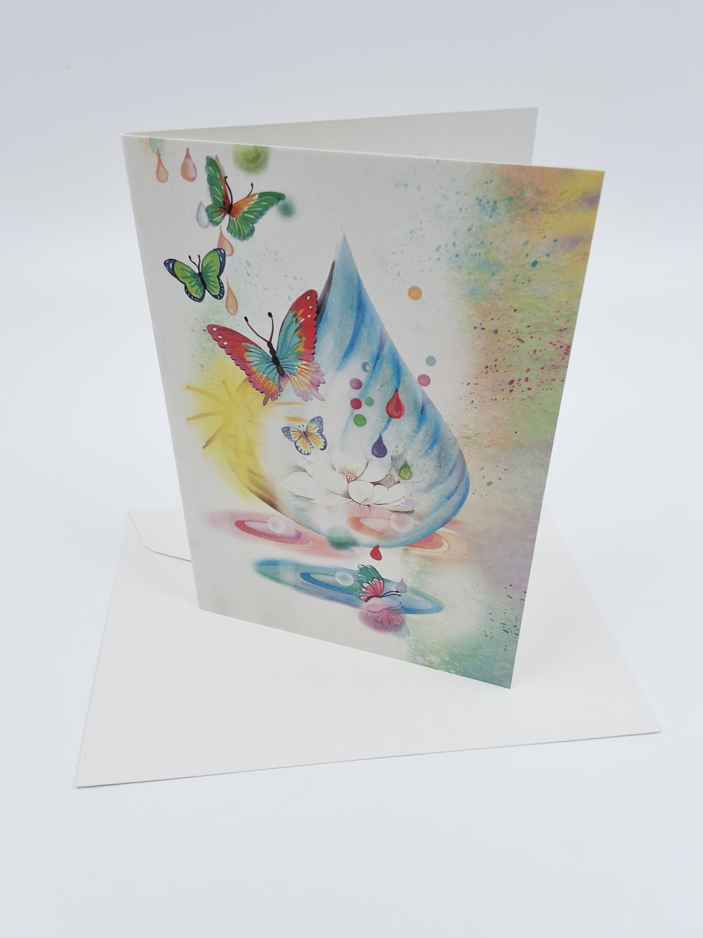 Wenskaart vlinders en een druppel
