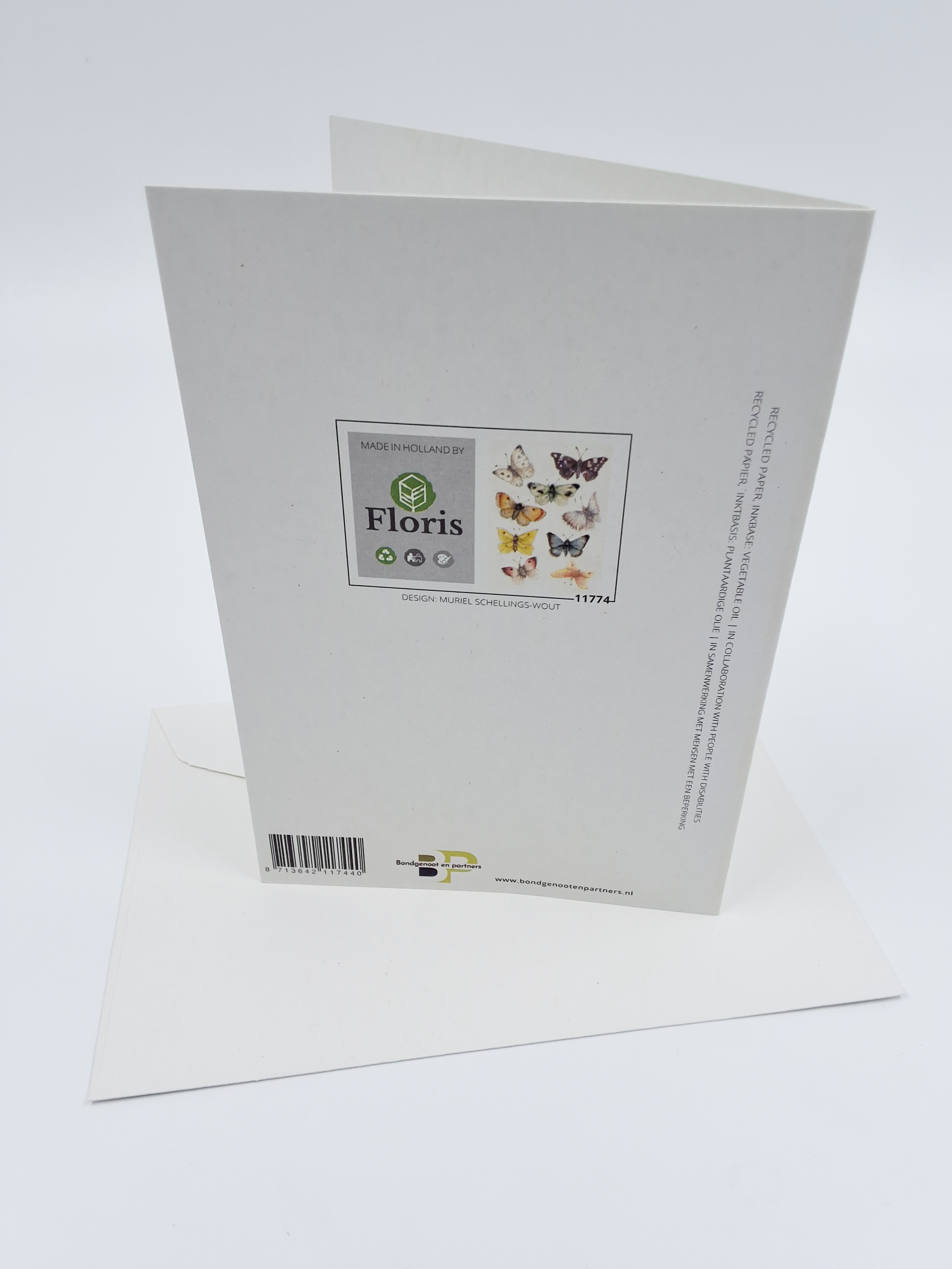 Onze wenskaarten zijn gemaakt van gerecycled papier en bedrukt met inkt op basis van plantaardige olie.