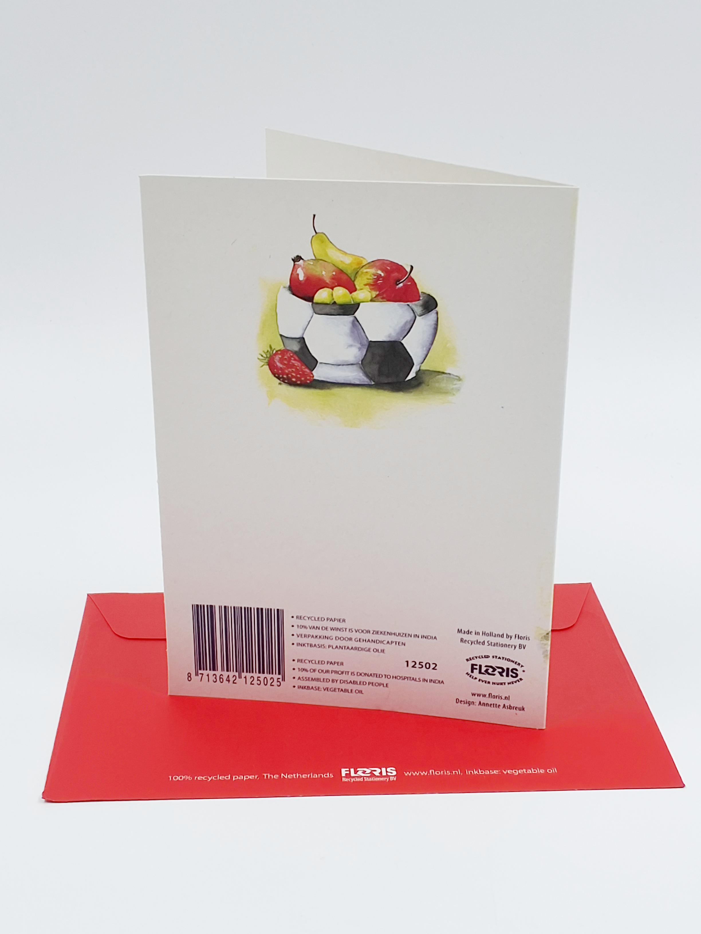 Onze wenskaarten zijn gemaakt van gerecycled papier en bedrukt met inkt op basis van plantaardige olie.