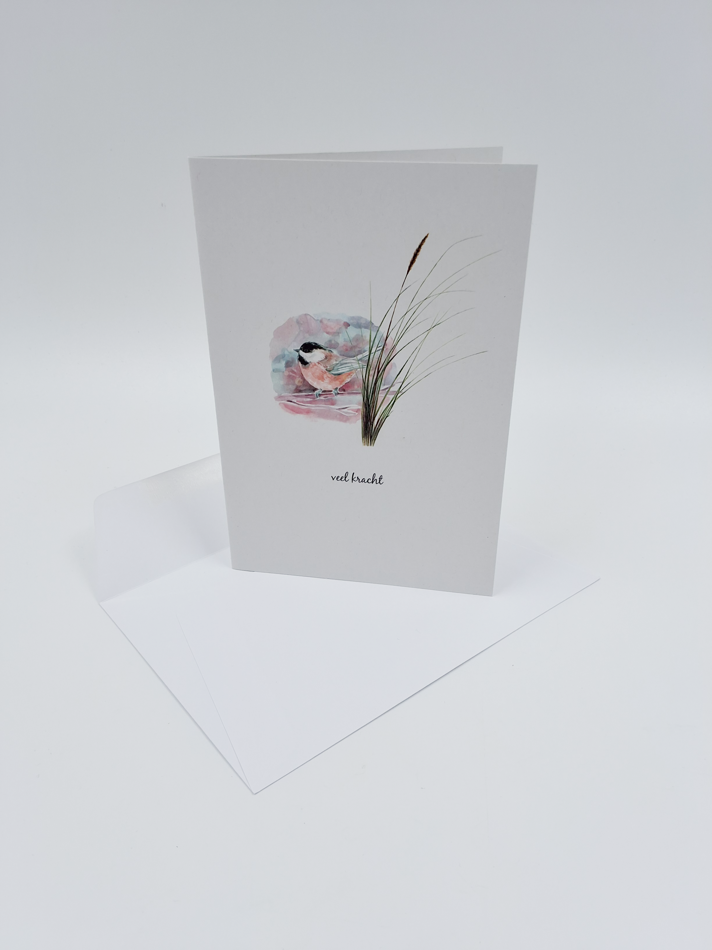 Onze wenskaarten zijn gemaakt van gerecycled papier en bedrukt met inkt op basis van plantaardige olie.