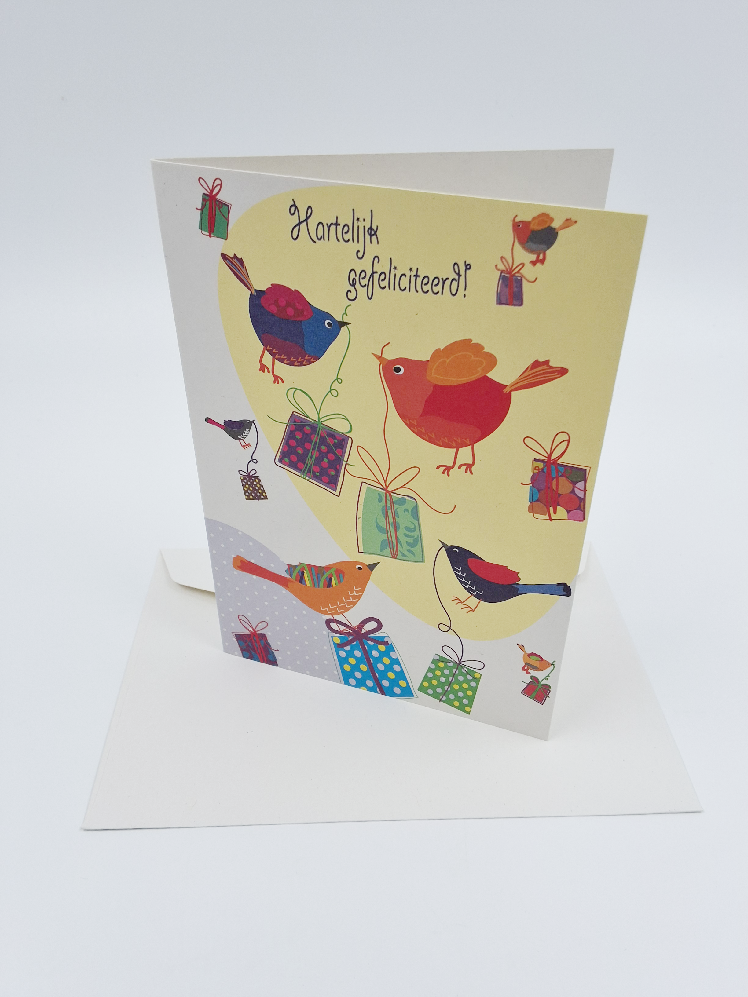 Wenskaart vogels cadeautjes, gefeliciteerd