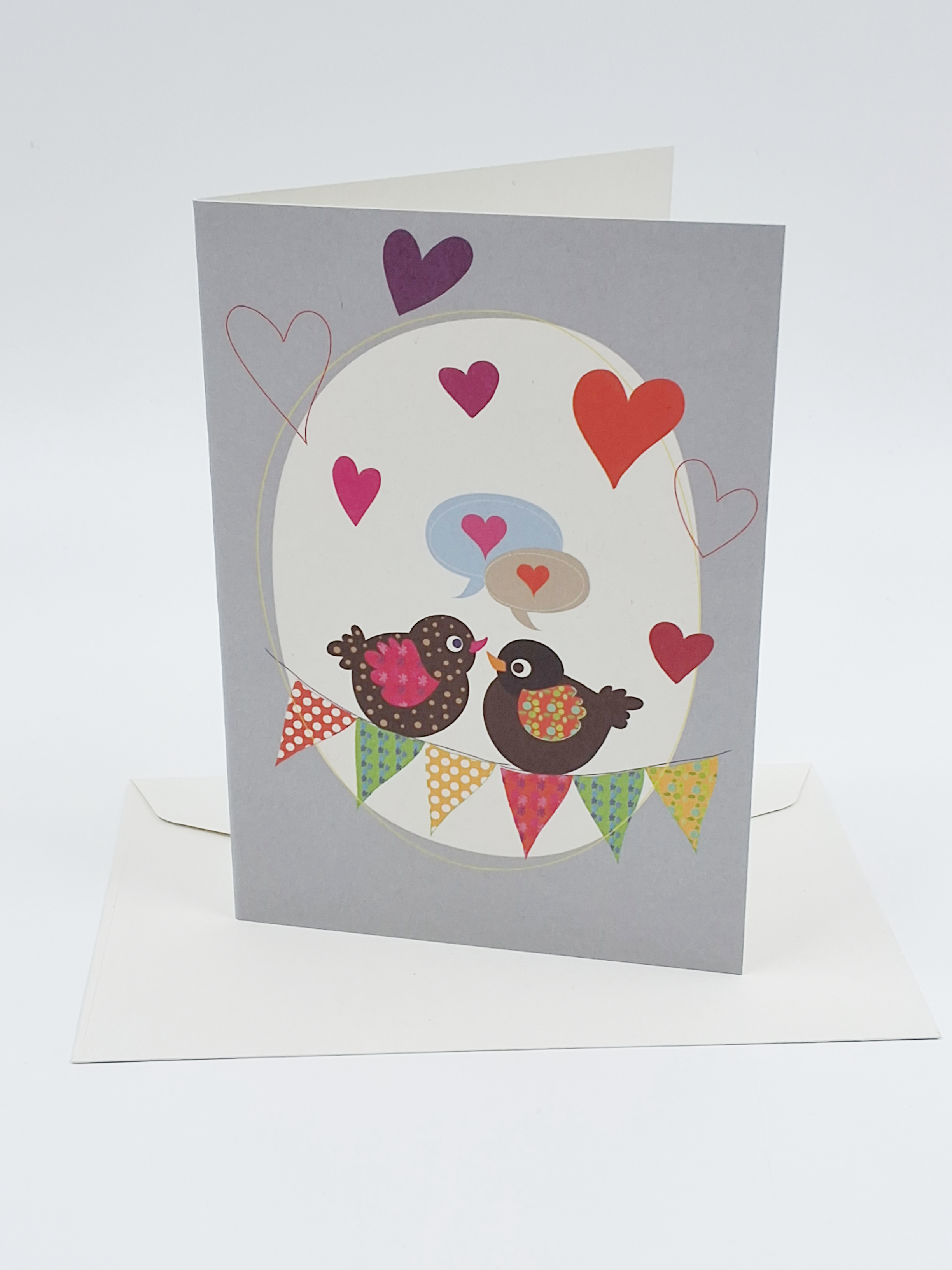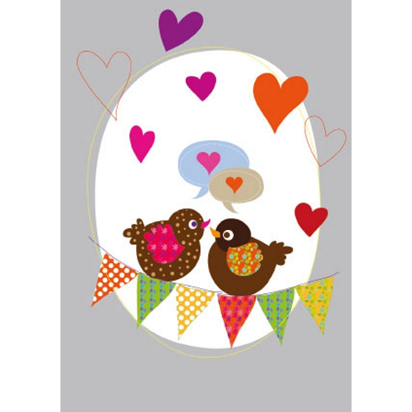 Wenskaart vogels en hartjes