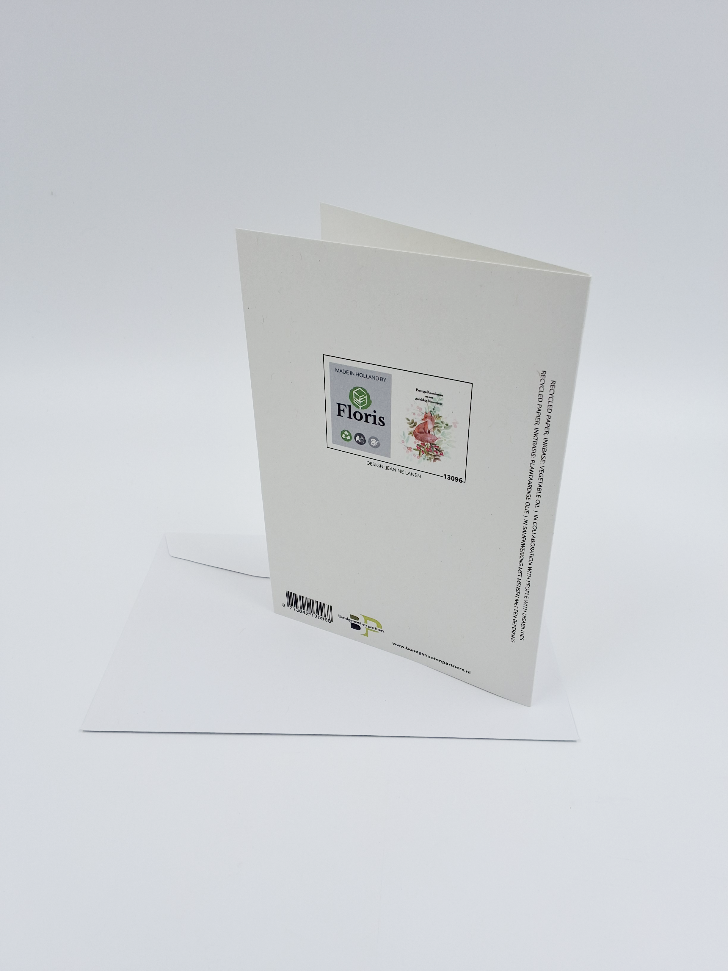 Onze kerstkaarten zijn gemaakt van gerecycled papier en bedrukt met inkt op basis van plantaardige olie.