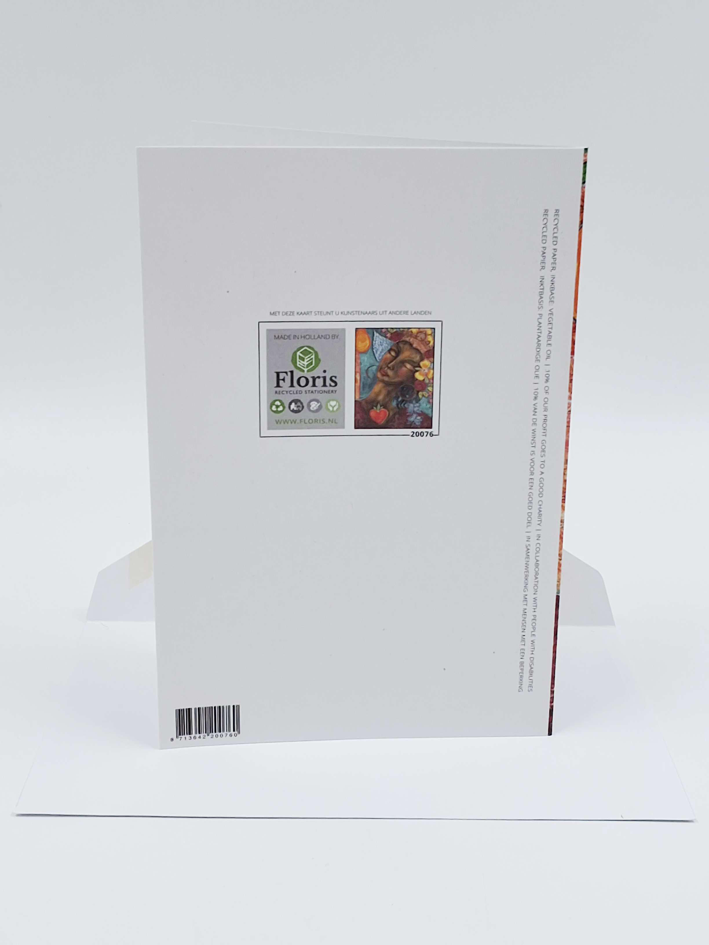 Onze wenskaarten zijn gemaakt van gerecycled papier en bedrukt met inkt op basis van plantaardige olie.