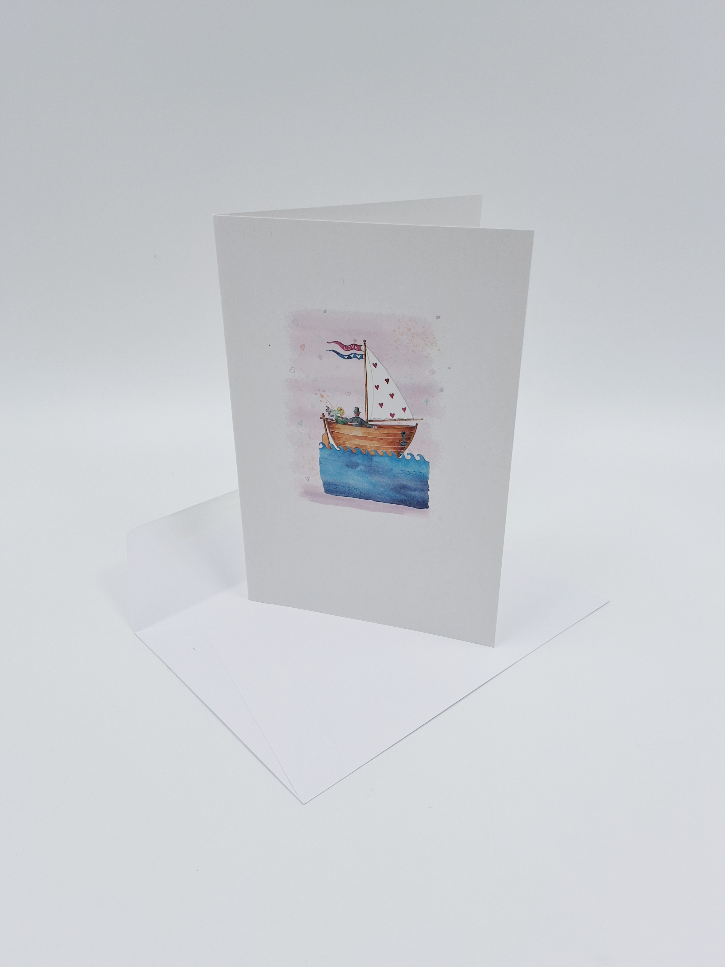 Onze wenskaarten zijn gemaakt van gerecycled papier en bedrukt met inkt op basis van plantaardige olie.